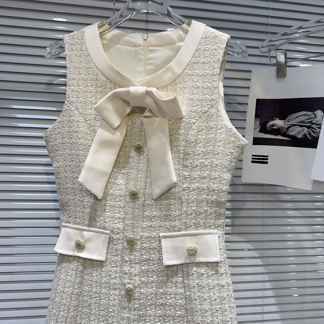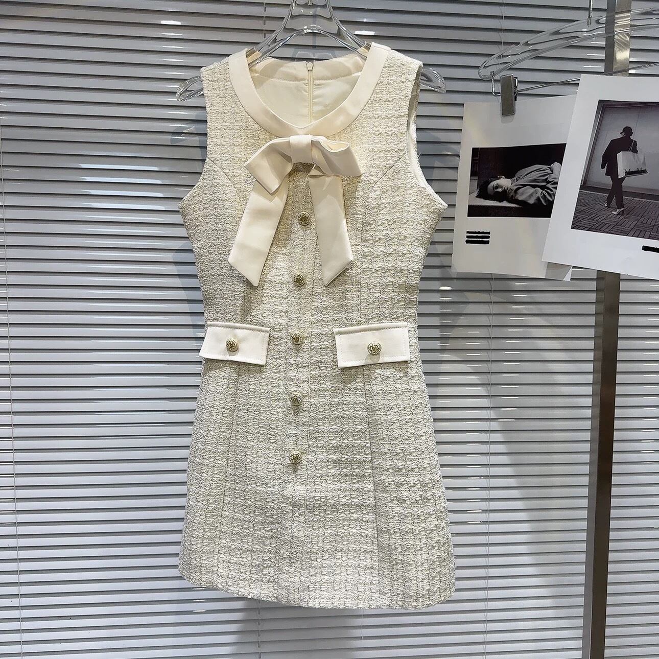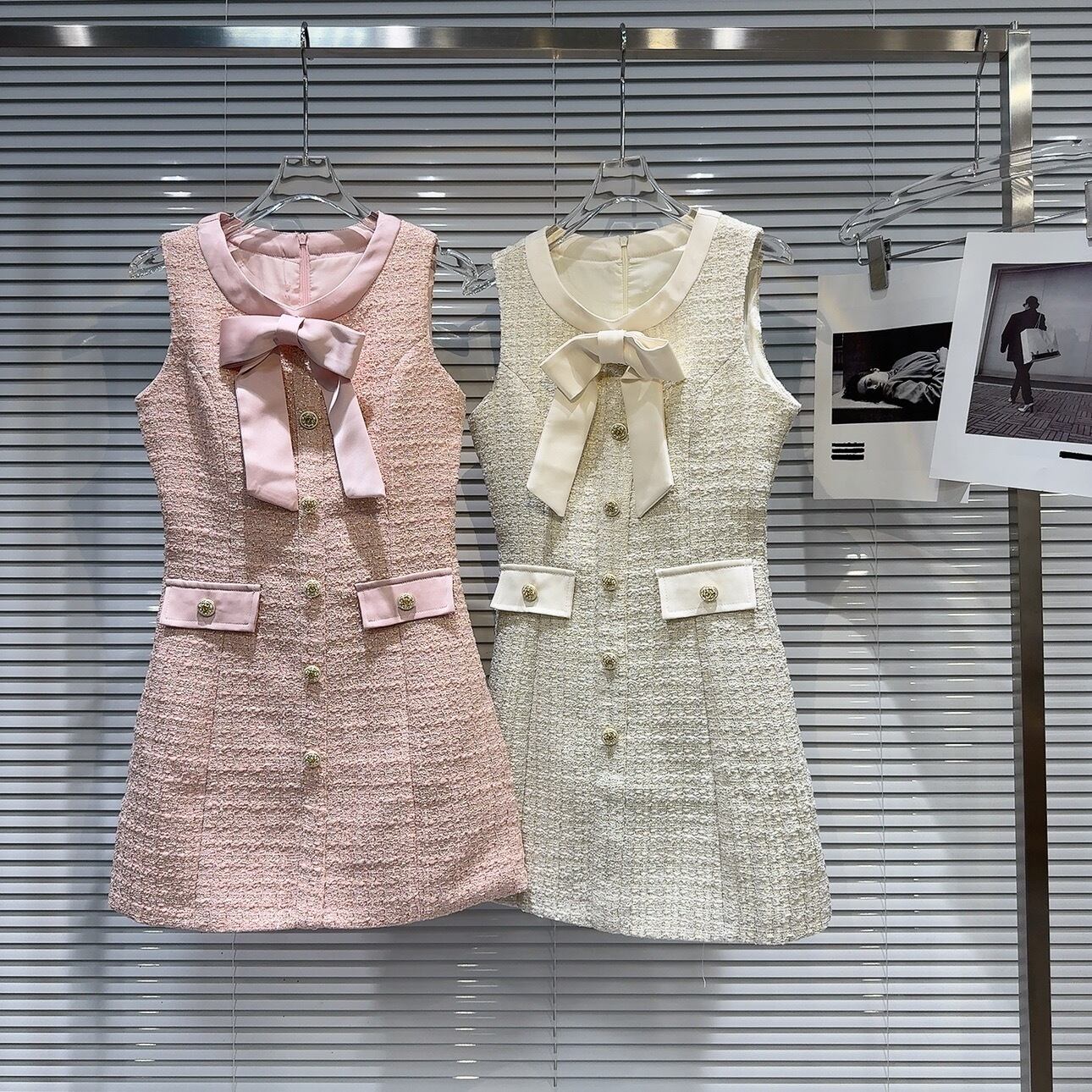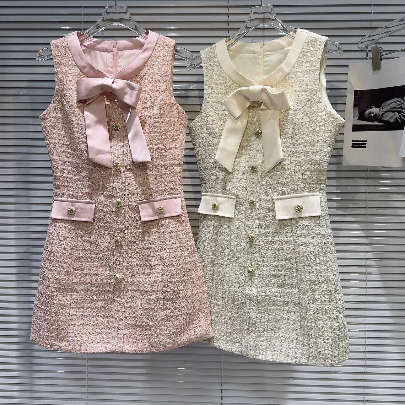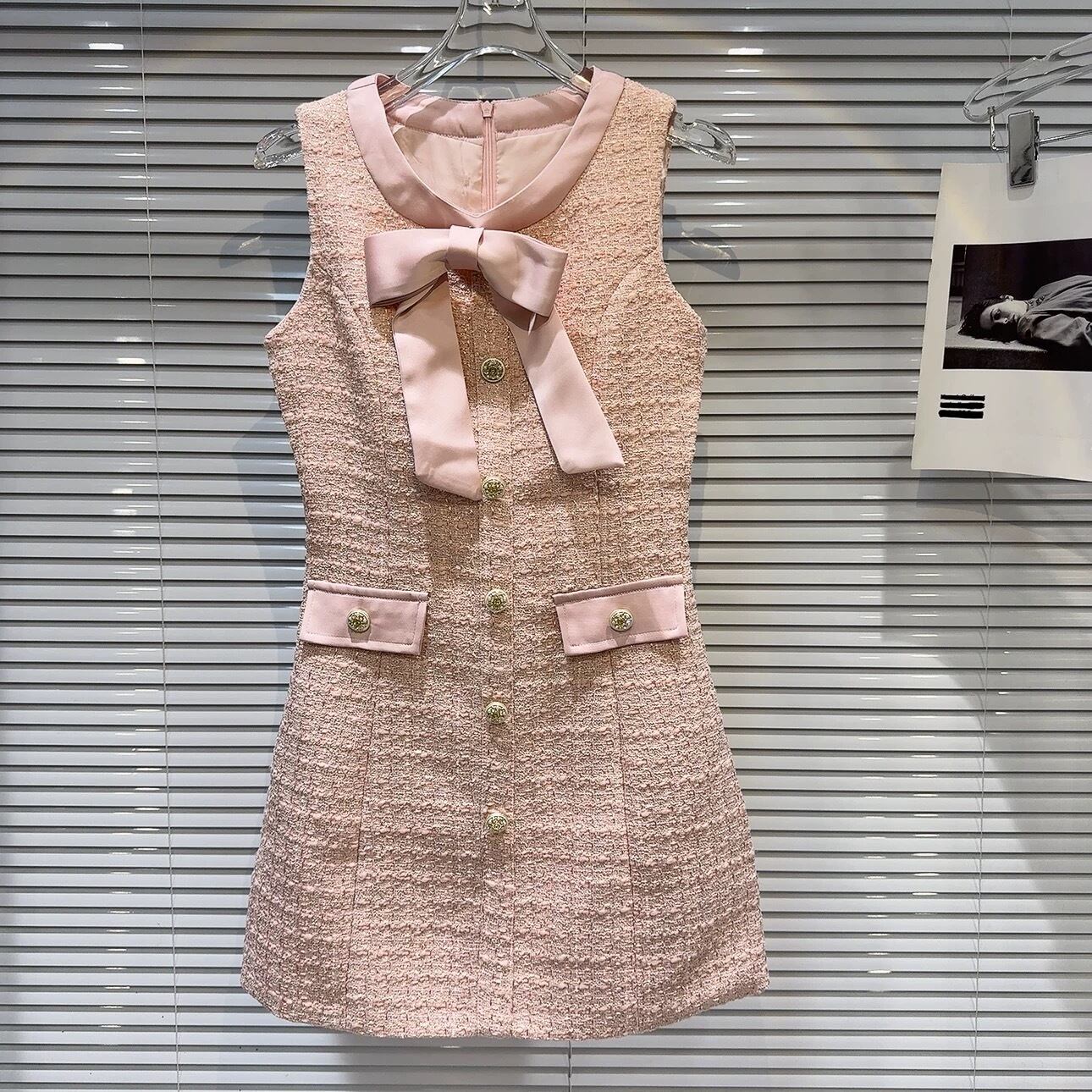 【dress】ツイードフロントボタンノースリーブワンピース2色 OR0042