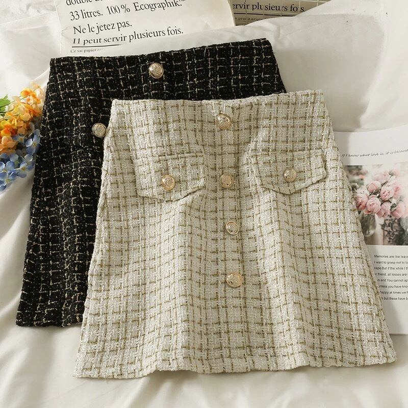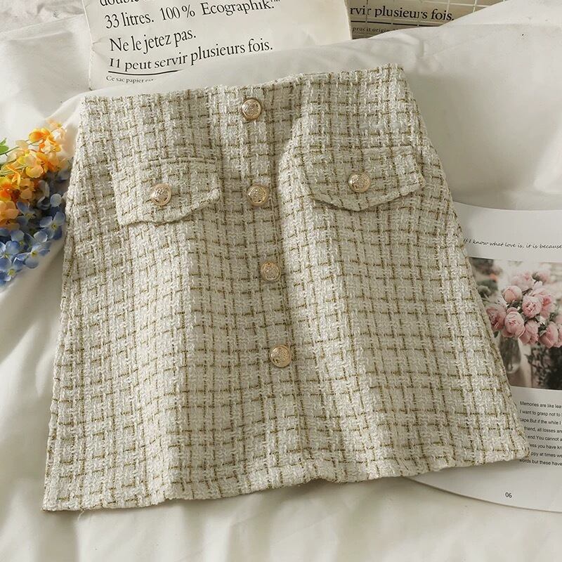 【bottoms】ツイードフロントボタンスカート2色 OR0050