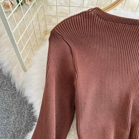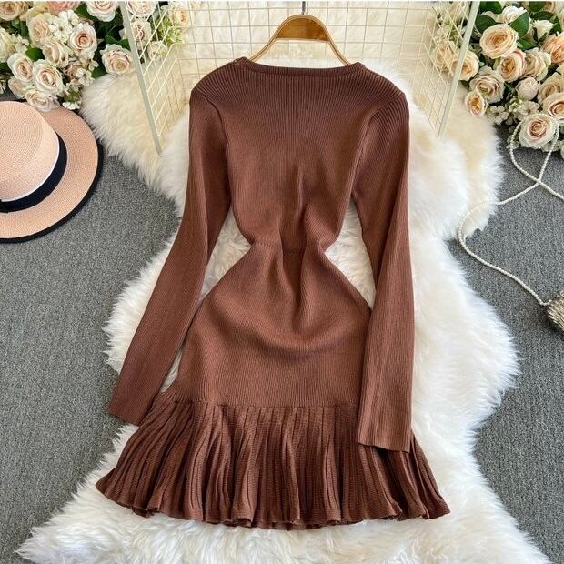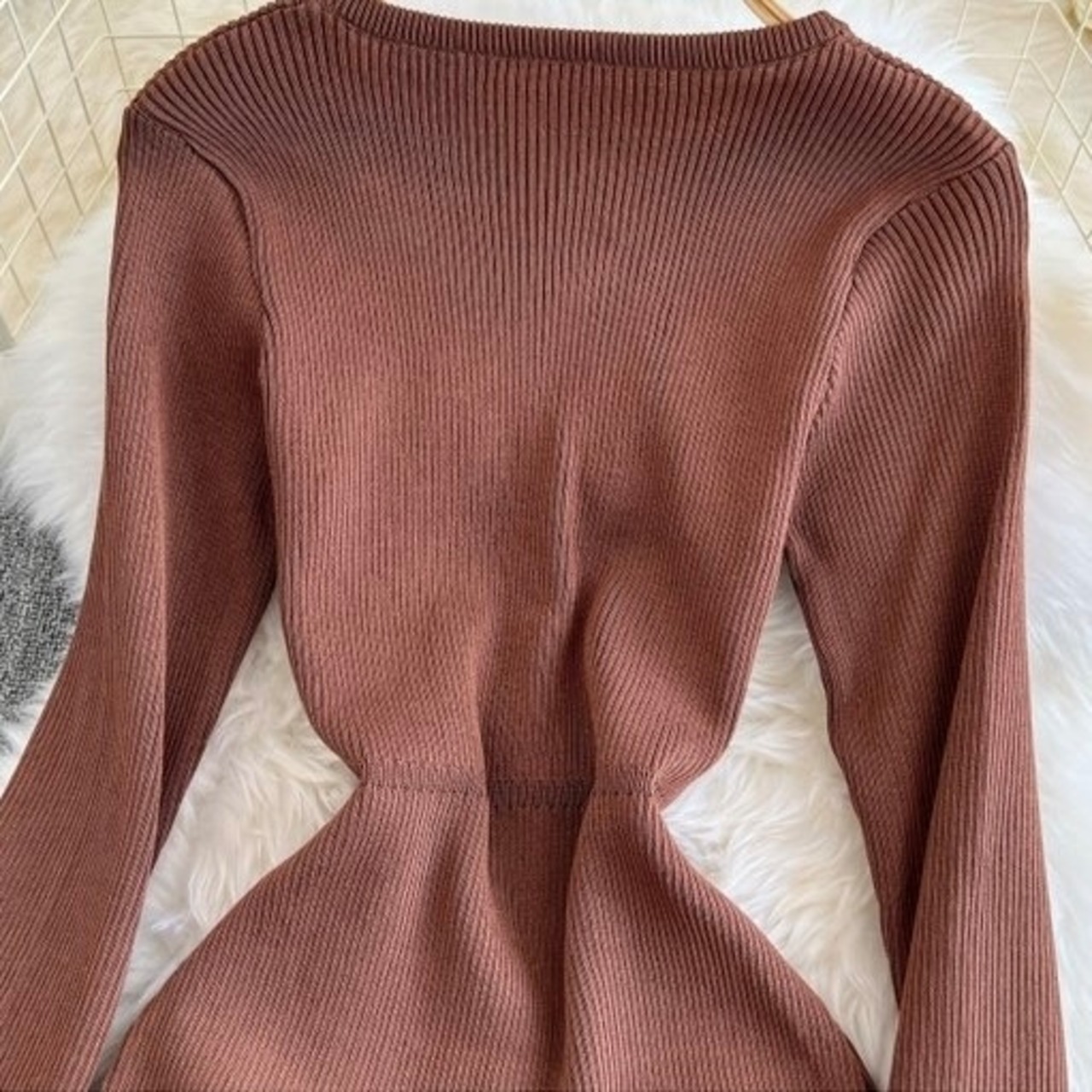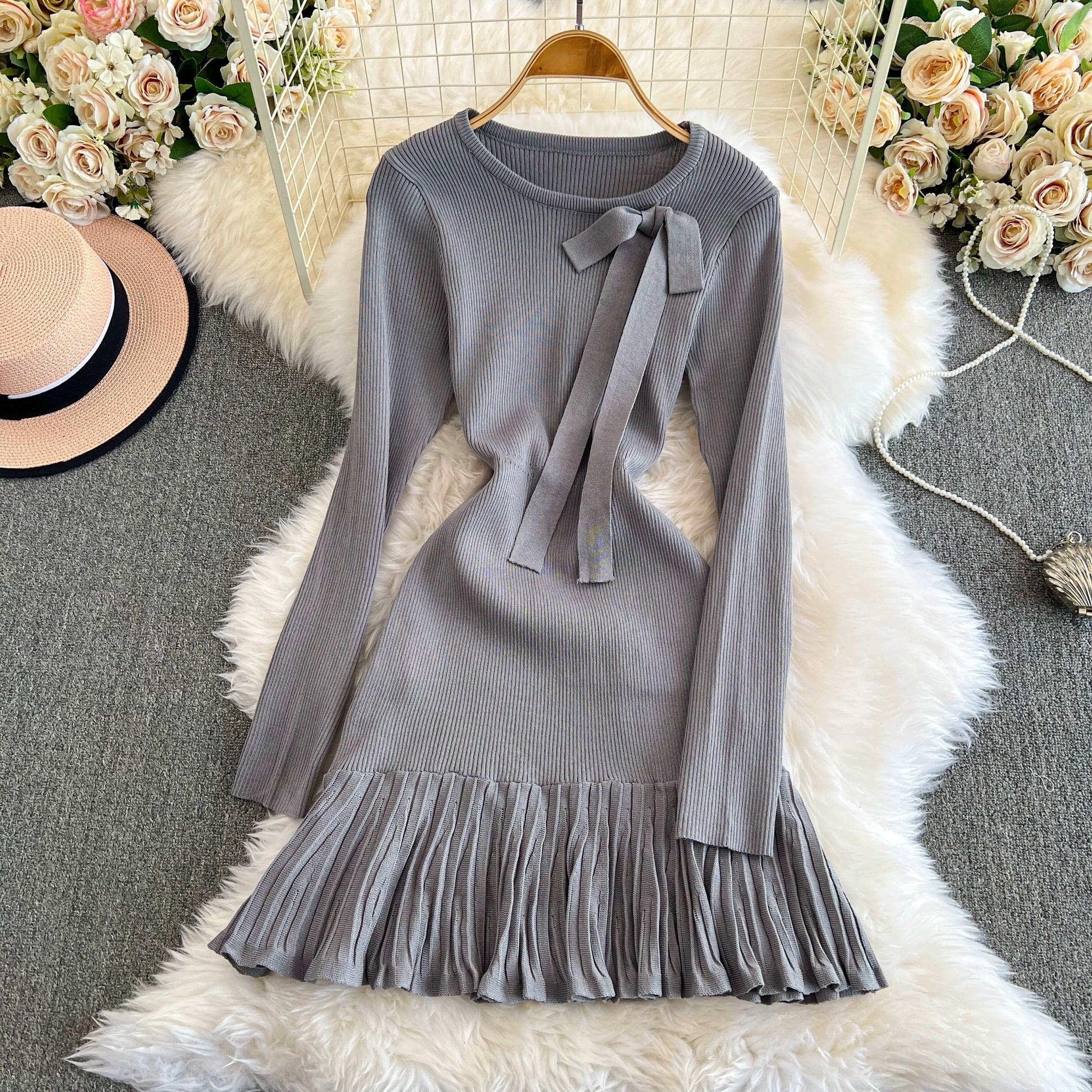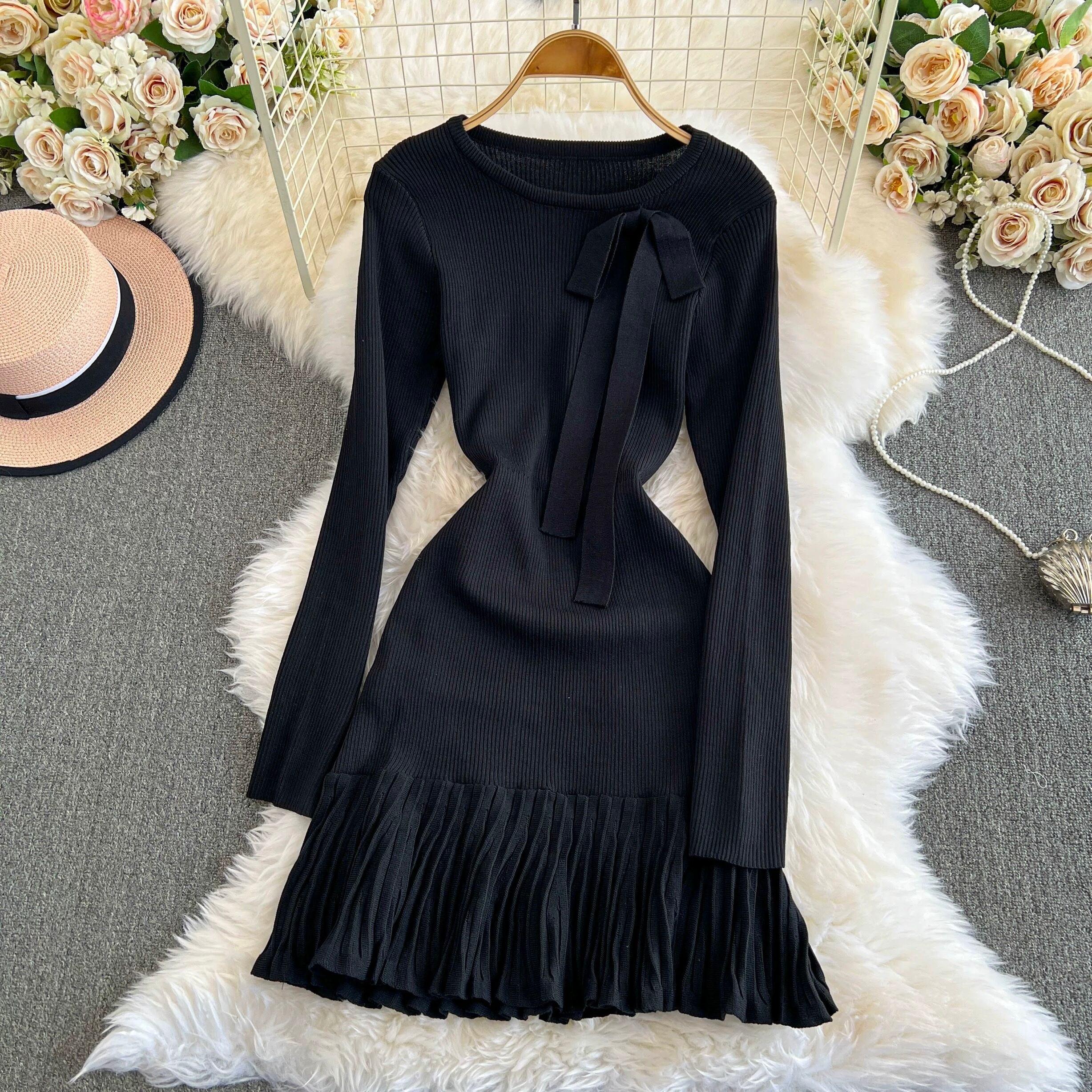 【dress】リボン長袖ニットワンピース4色 OR0054