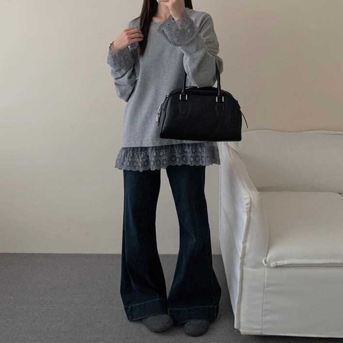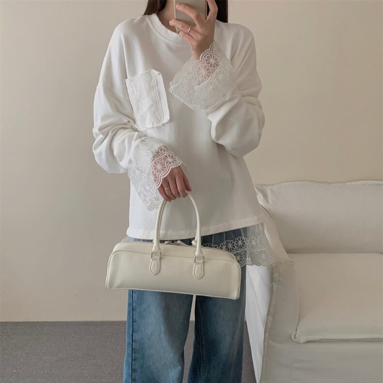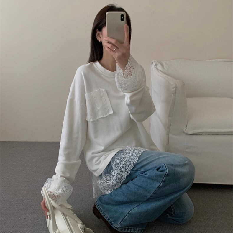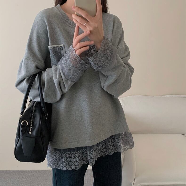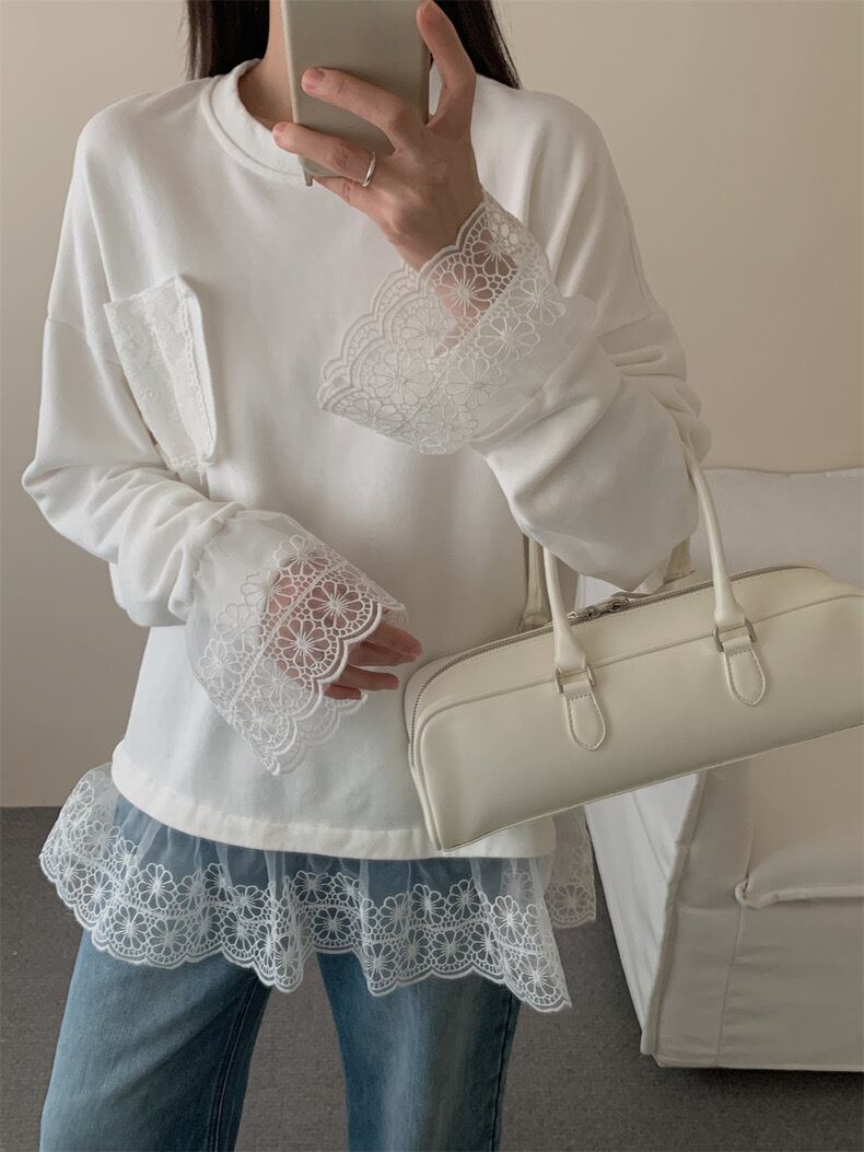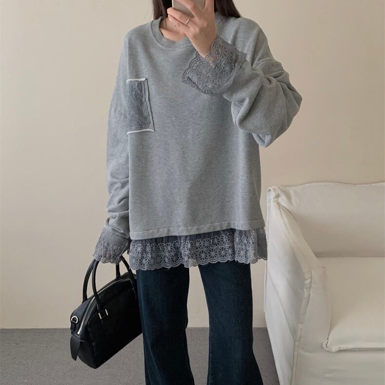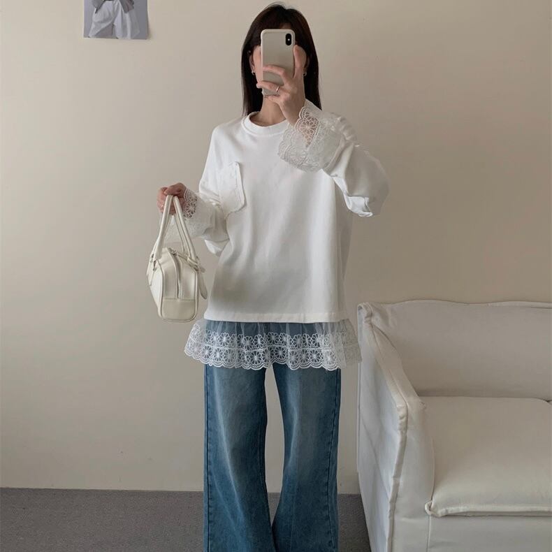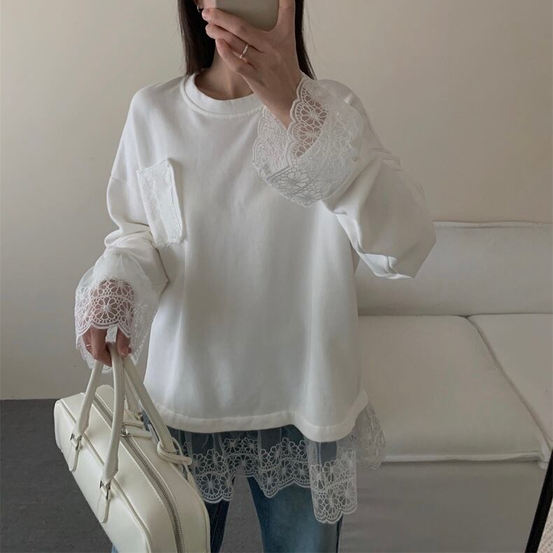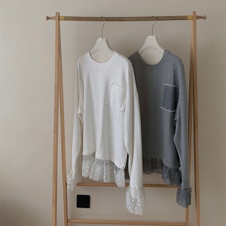 【tops】レースドッキングゆったりトップス2色 OR0057