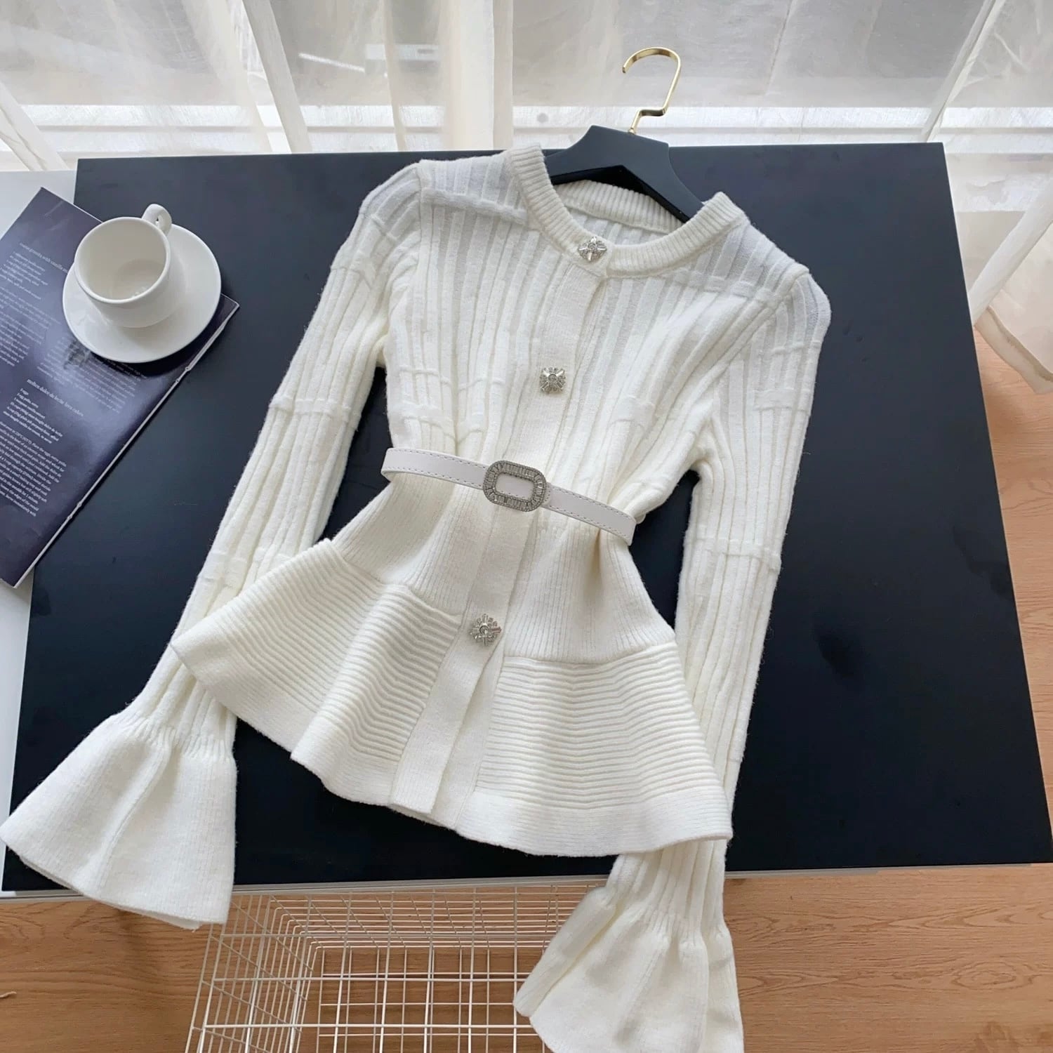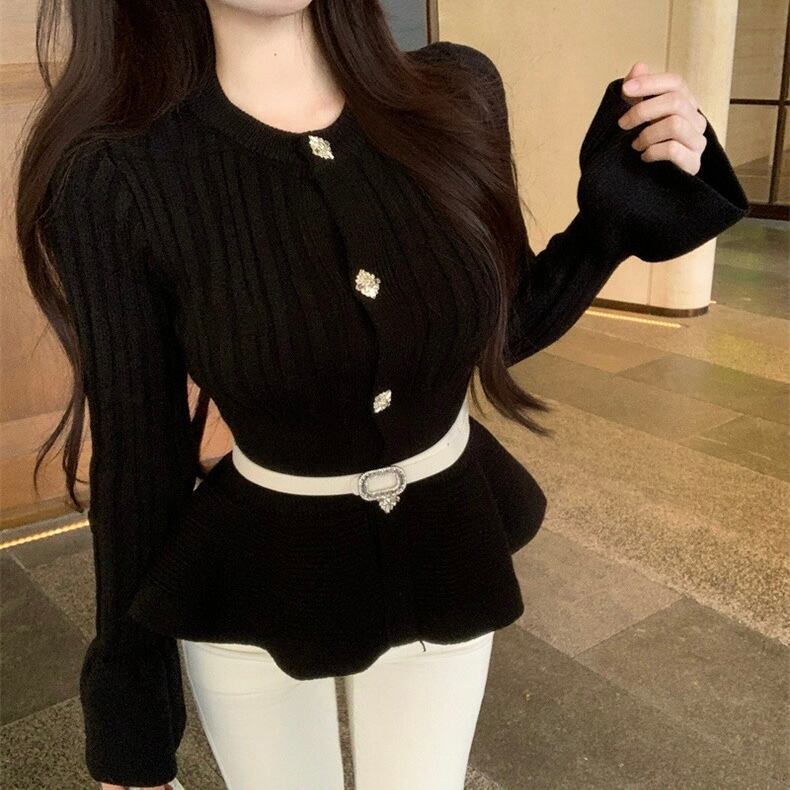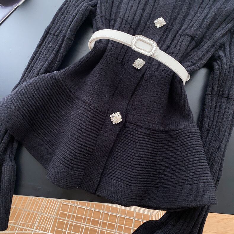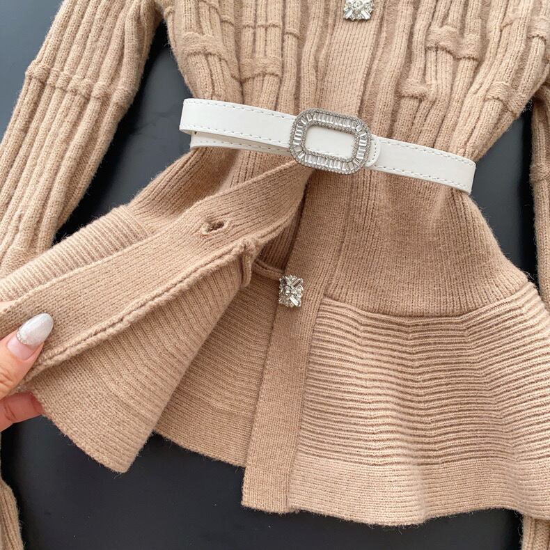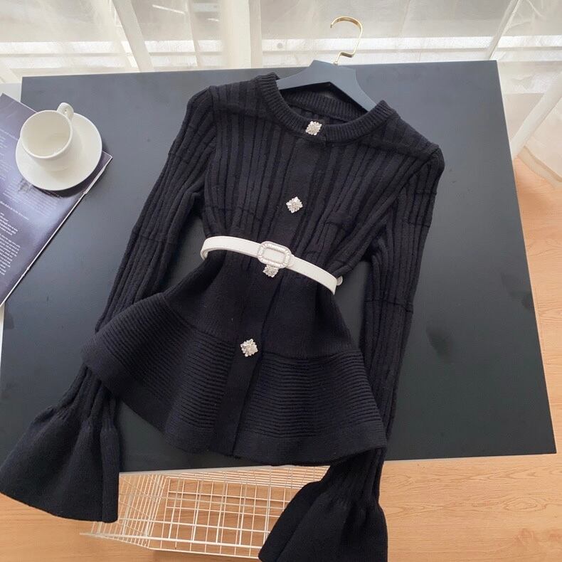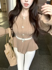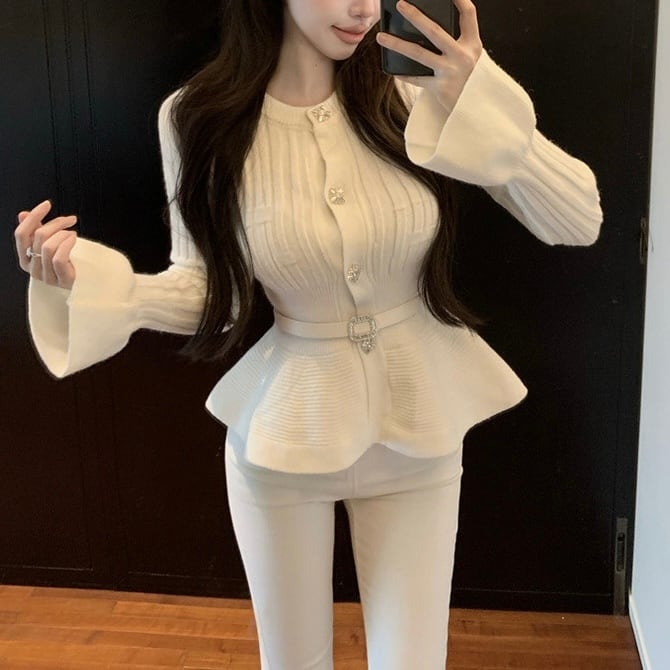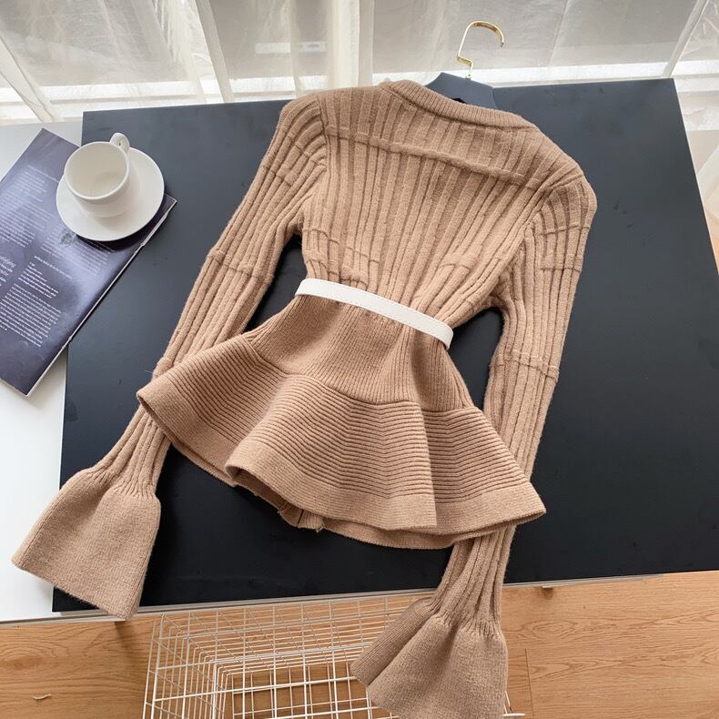 【tops】ベルト付きフリルニットトップス3色 OR0061