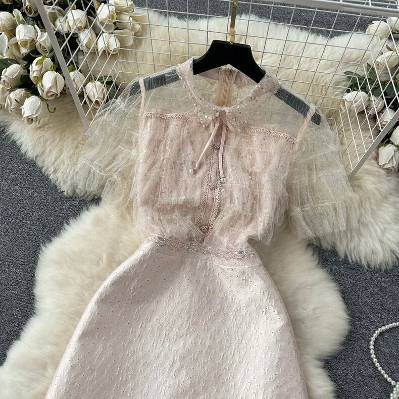 【dress】ビジューチュールドッキングワンピース OR0070