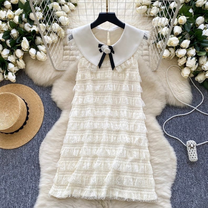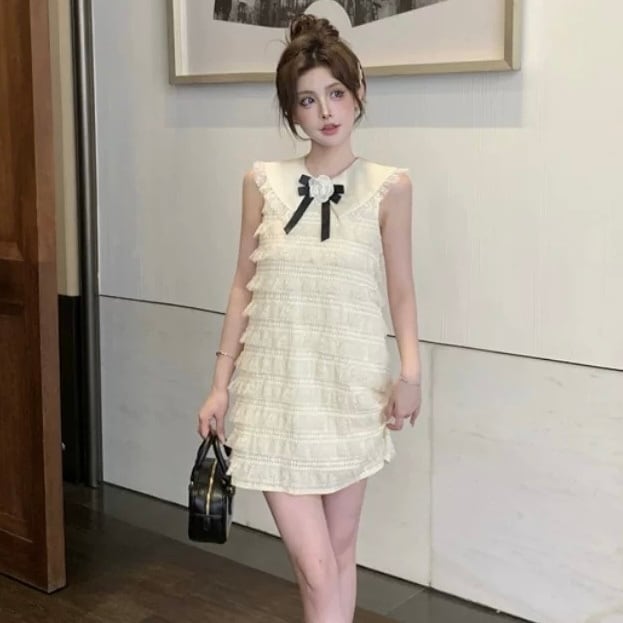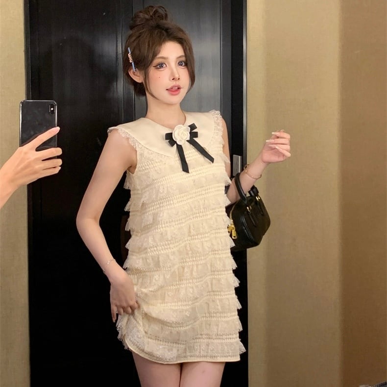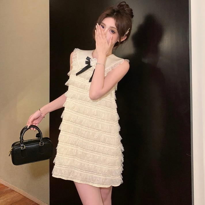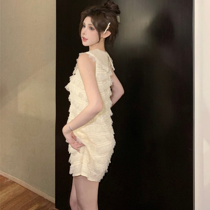 【dress】丸襟フリルノースリーブワンピース OR0072