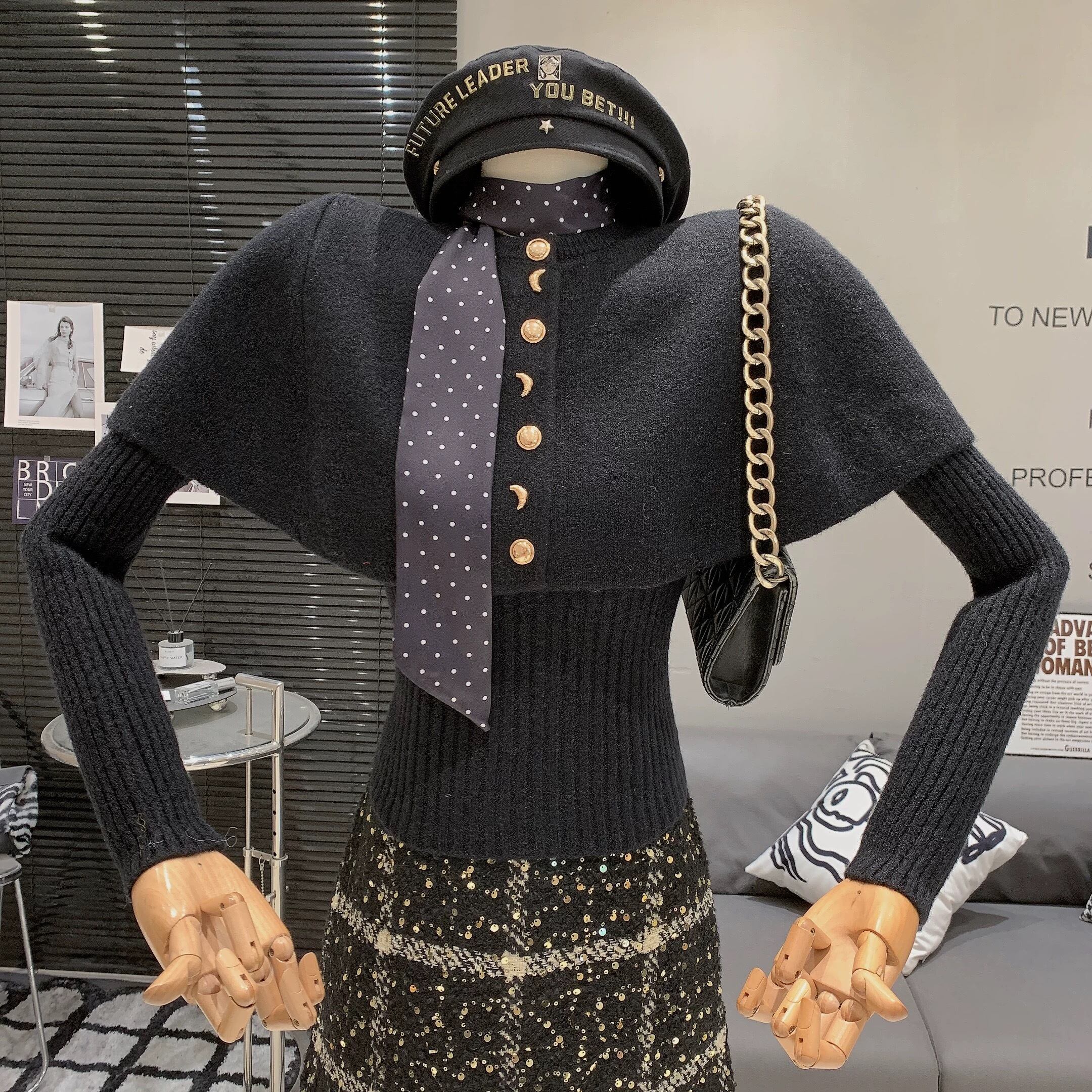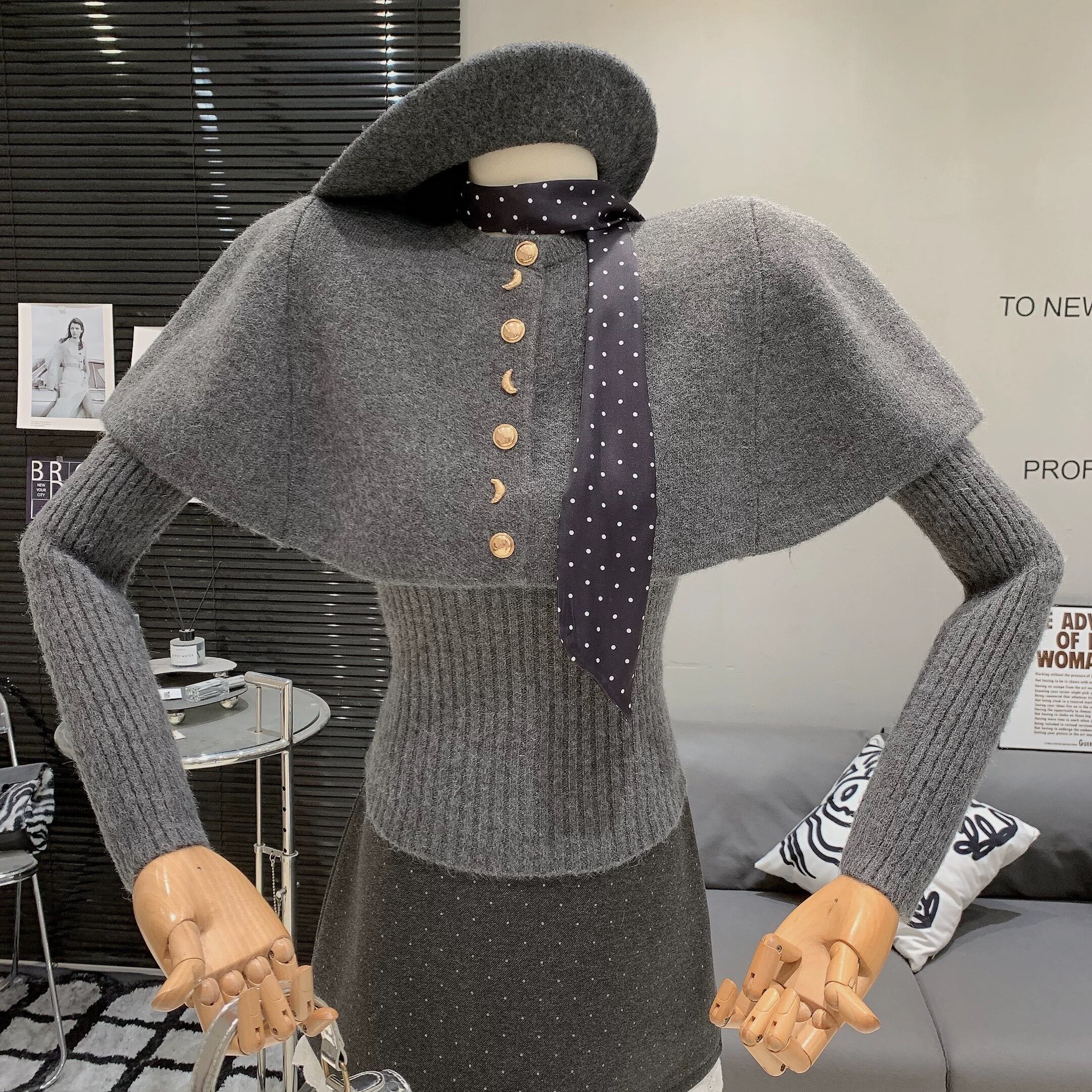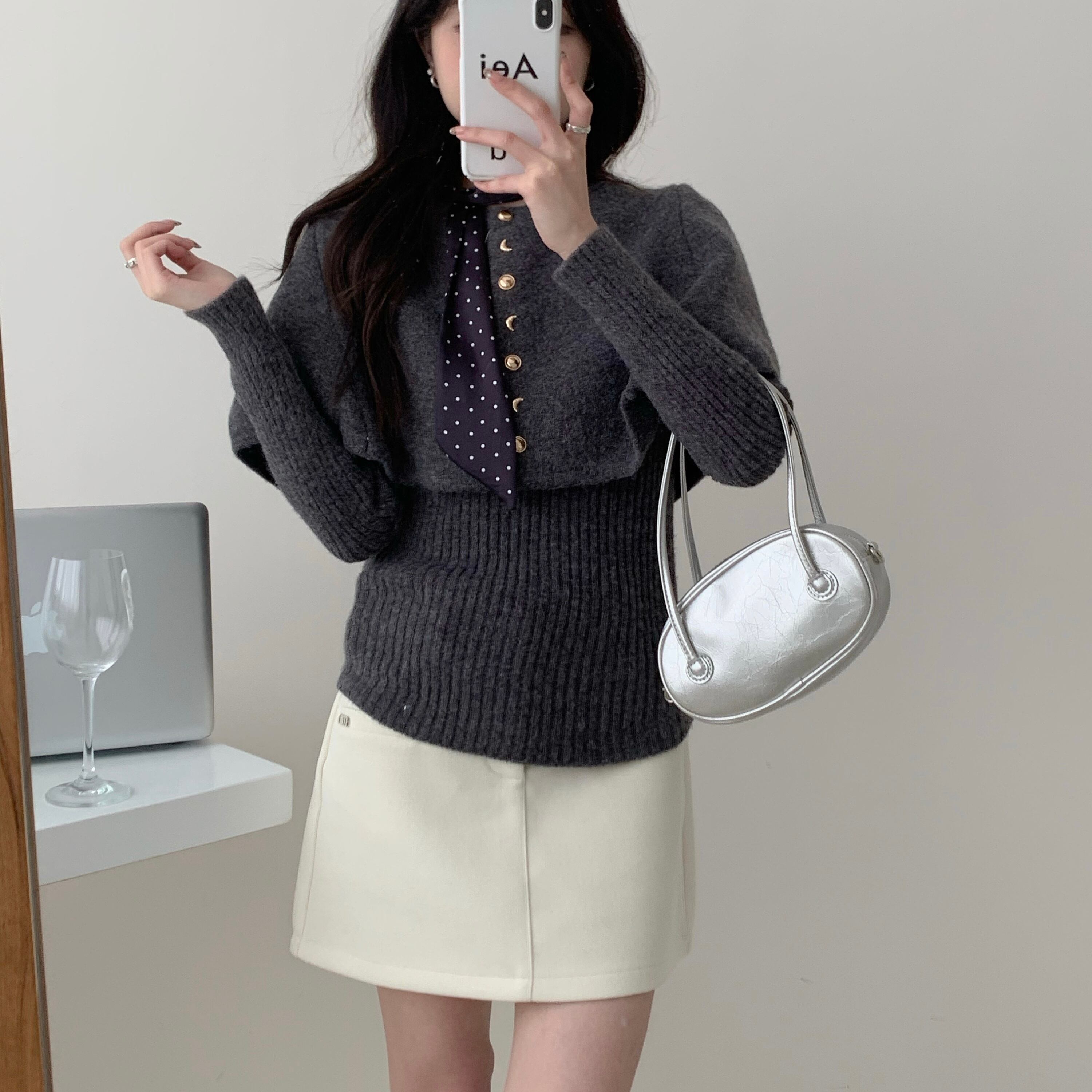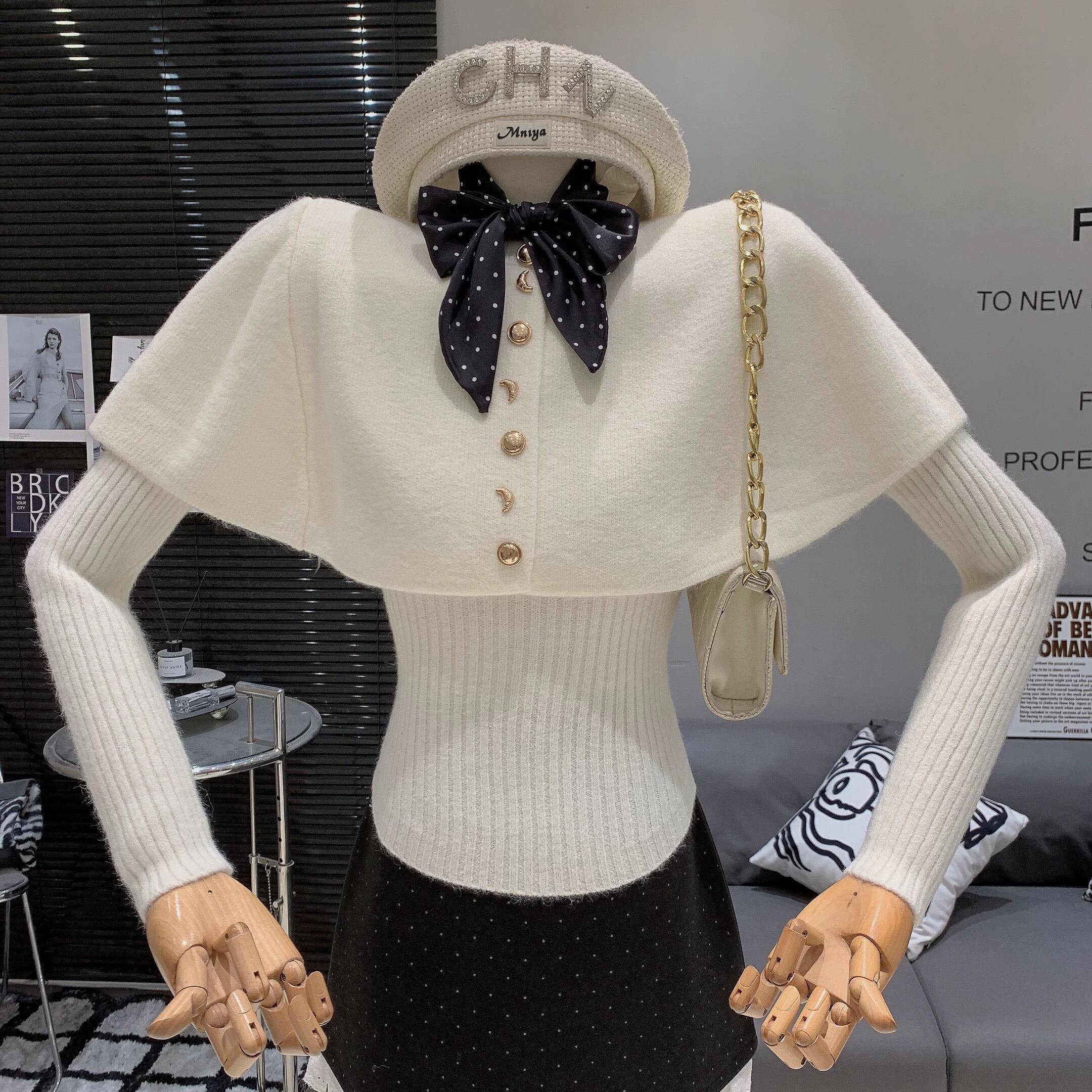 【set】スカーフxニットケープxトップス5色 OR0077