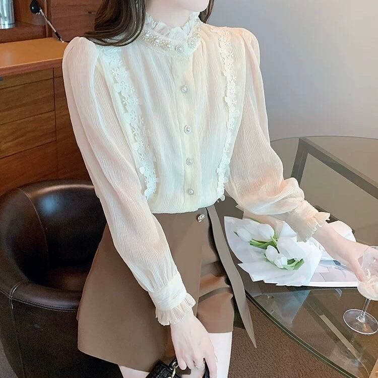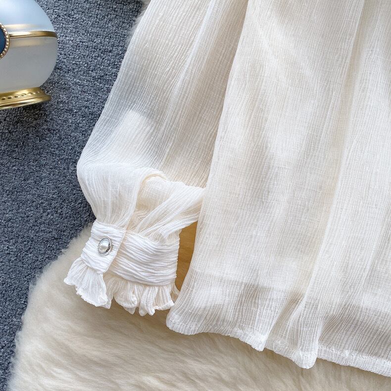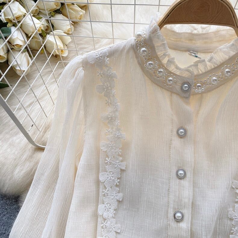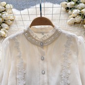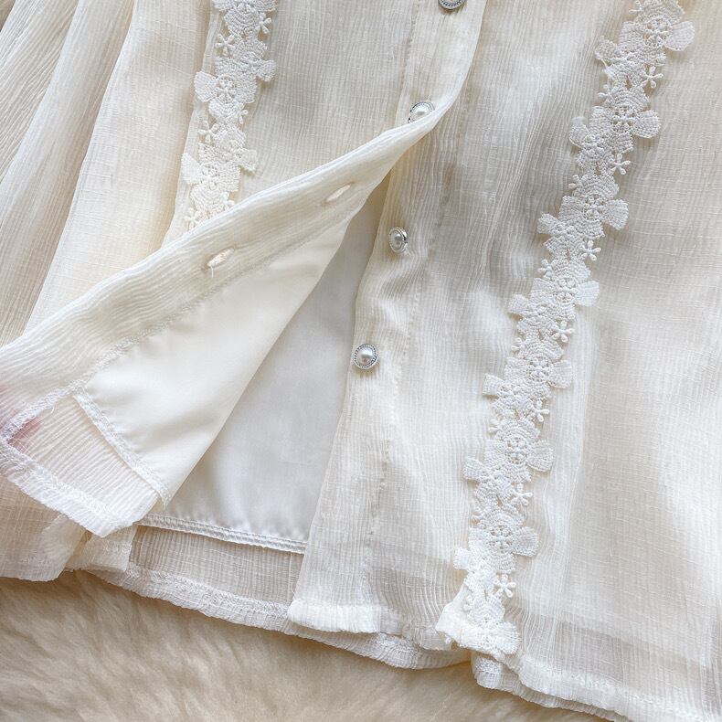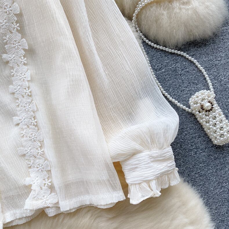 【tops】レースフリル袖長袖シャツトップス OR0080