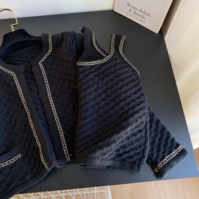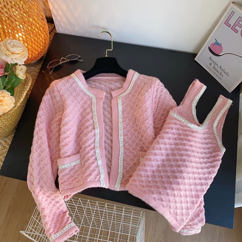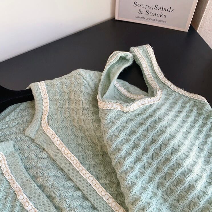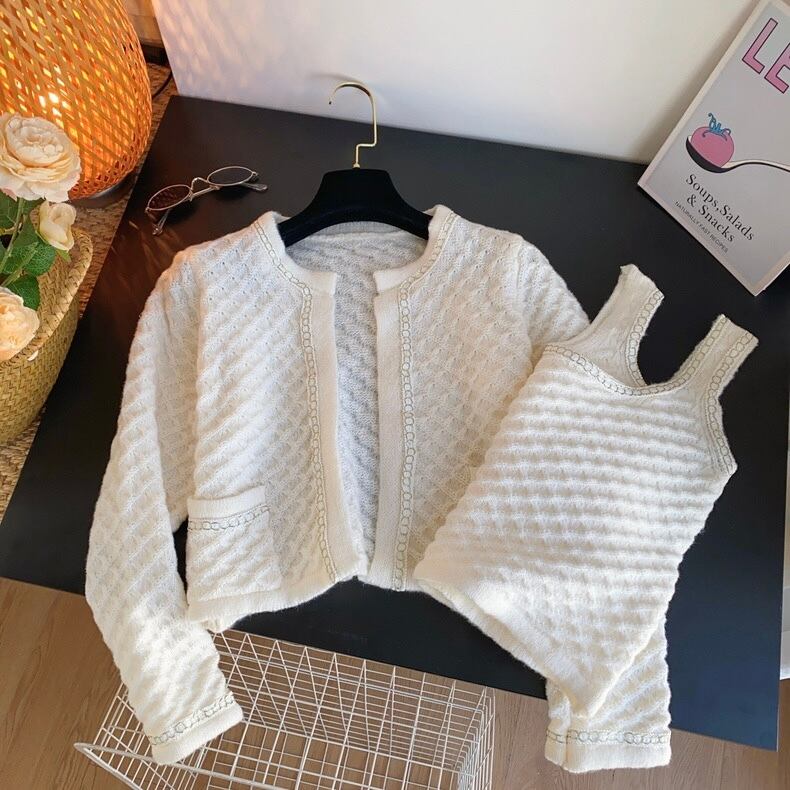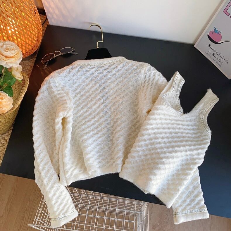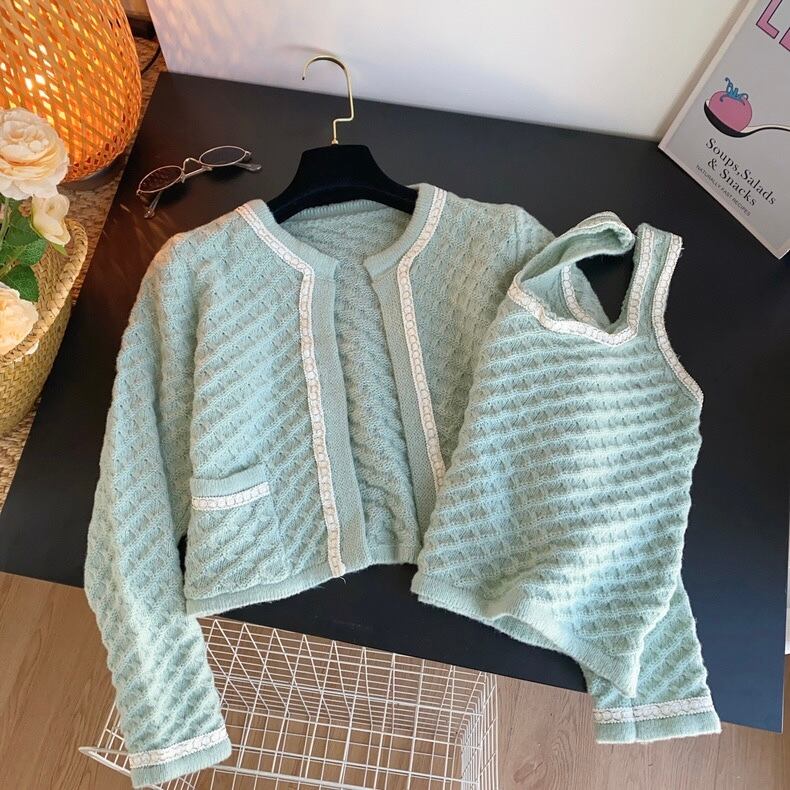 【set】ショート丈ニットカーディガンxトップス4色 OR0082