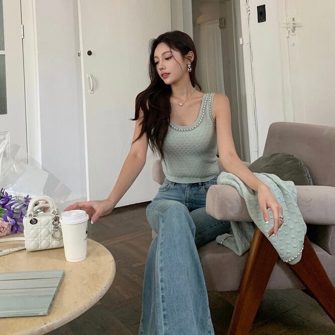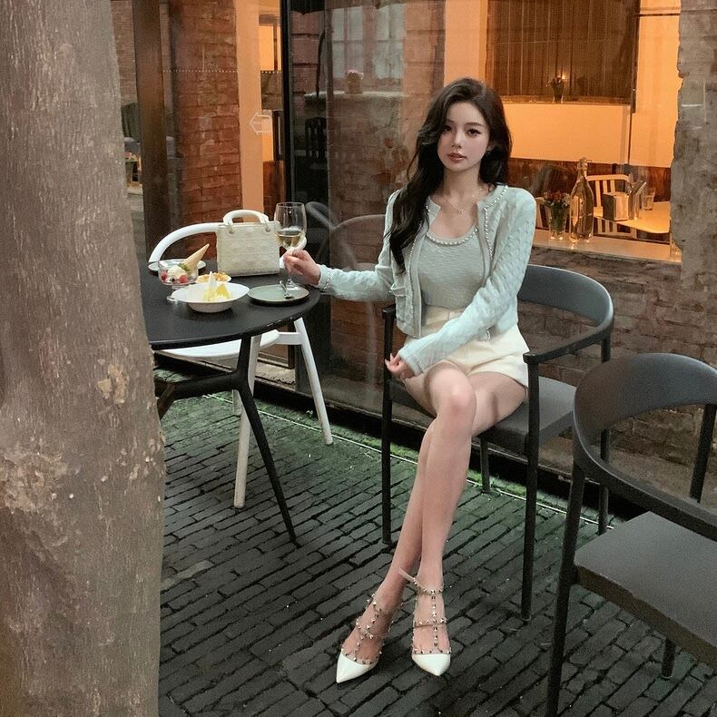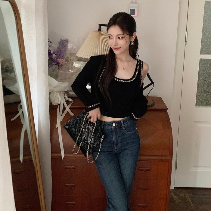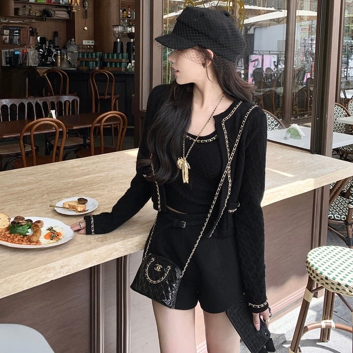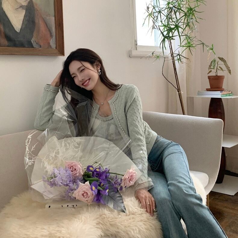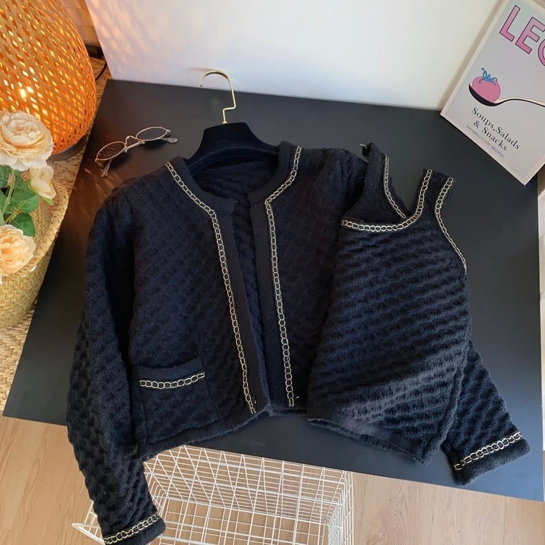 【set】ショート丈ニットカーディガンxトップス4色 OR0082