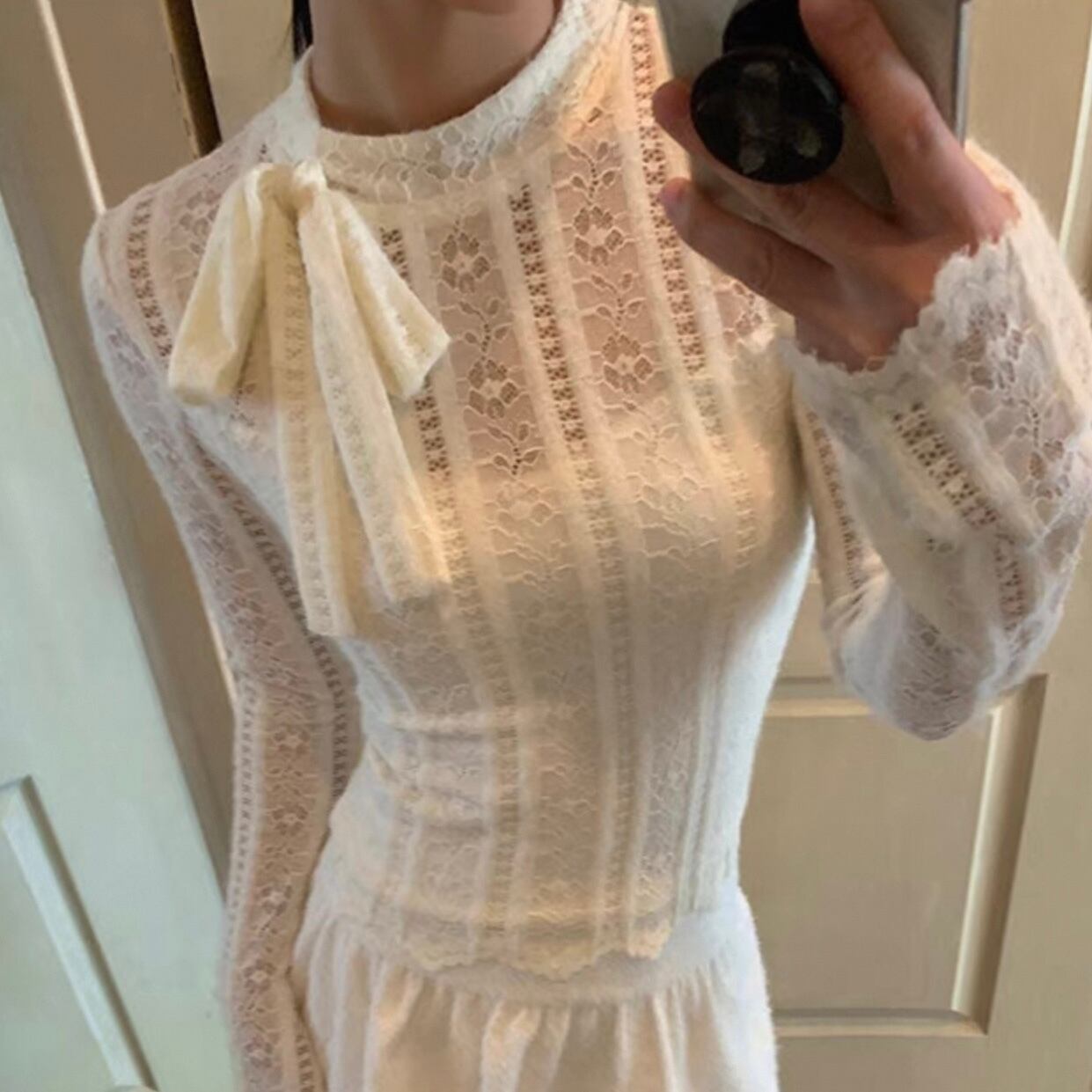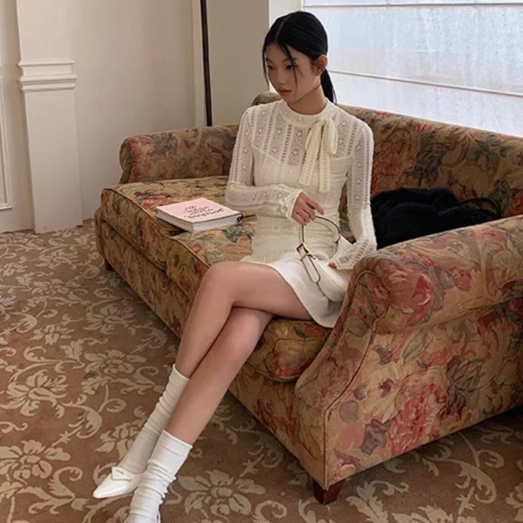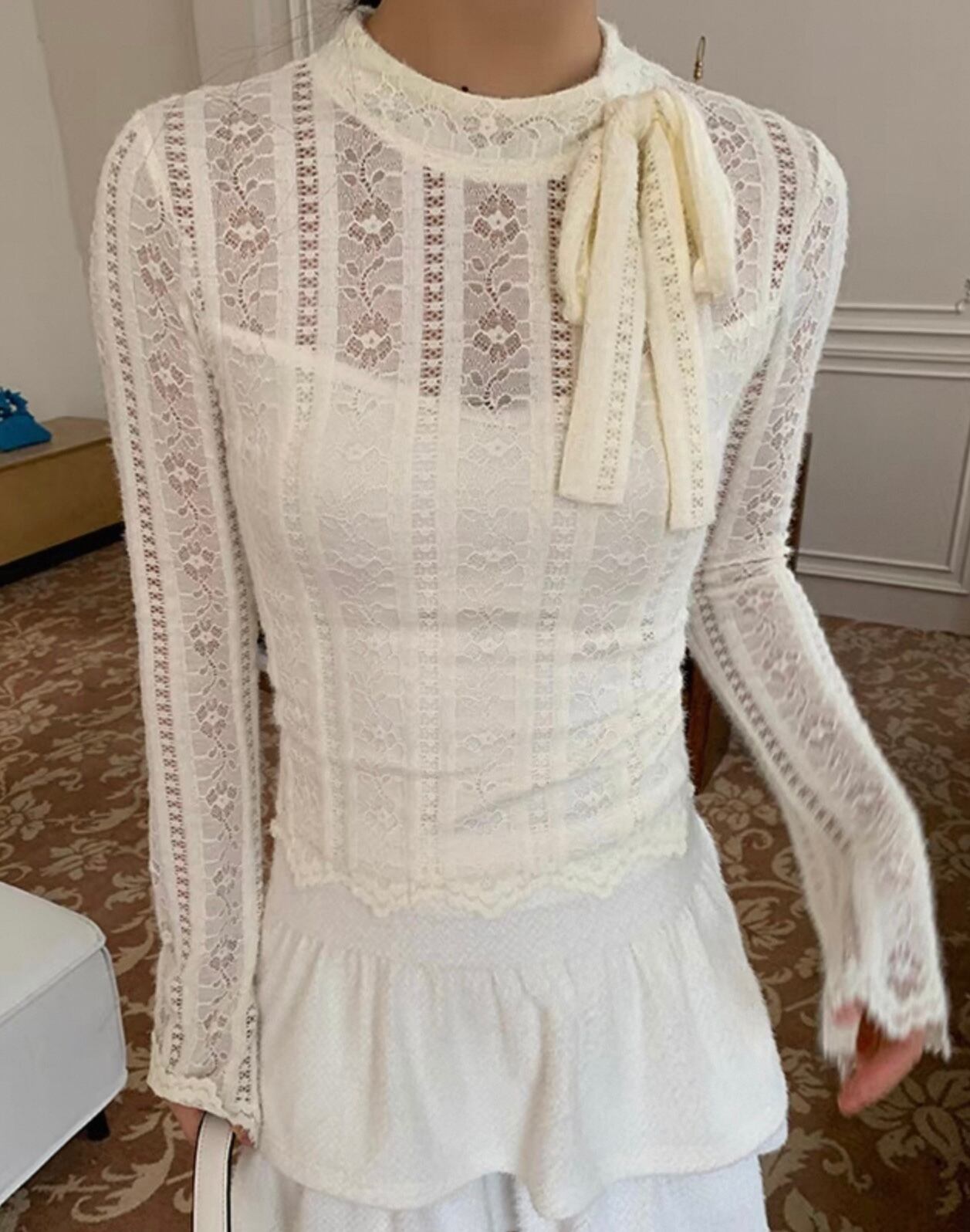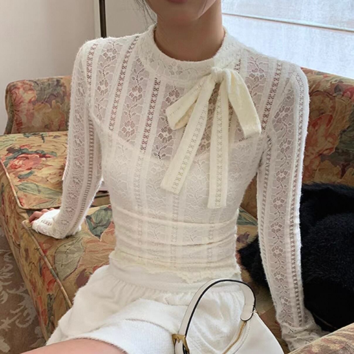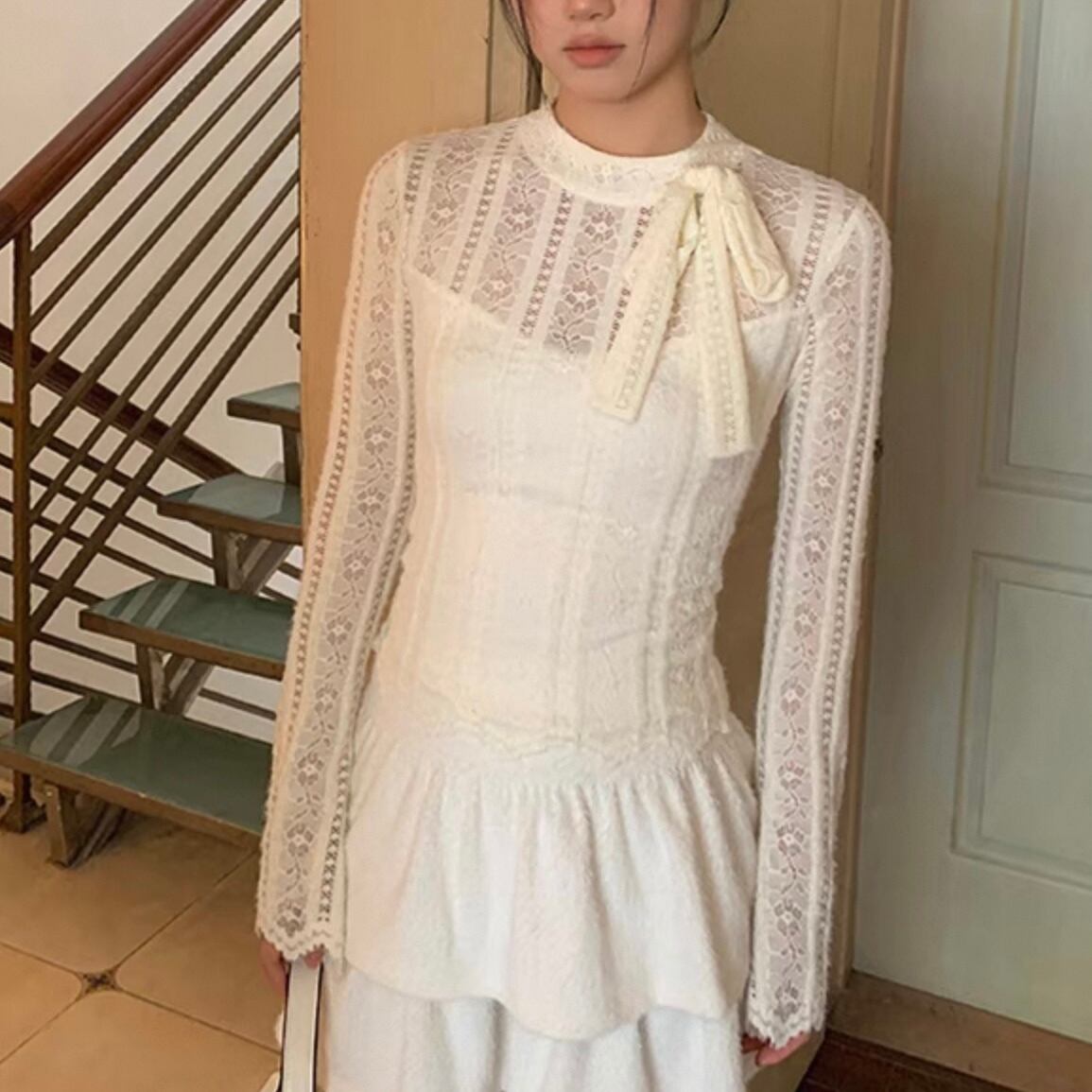 【tops】重ね着風総レースリボントップス KQ0316