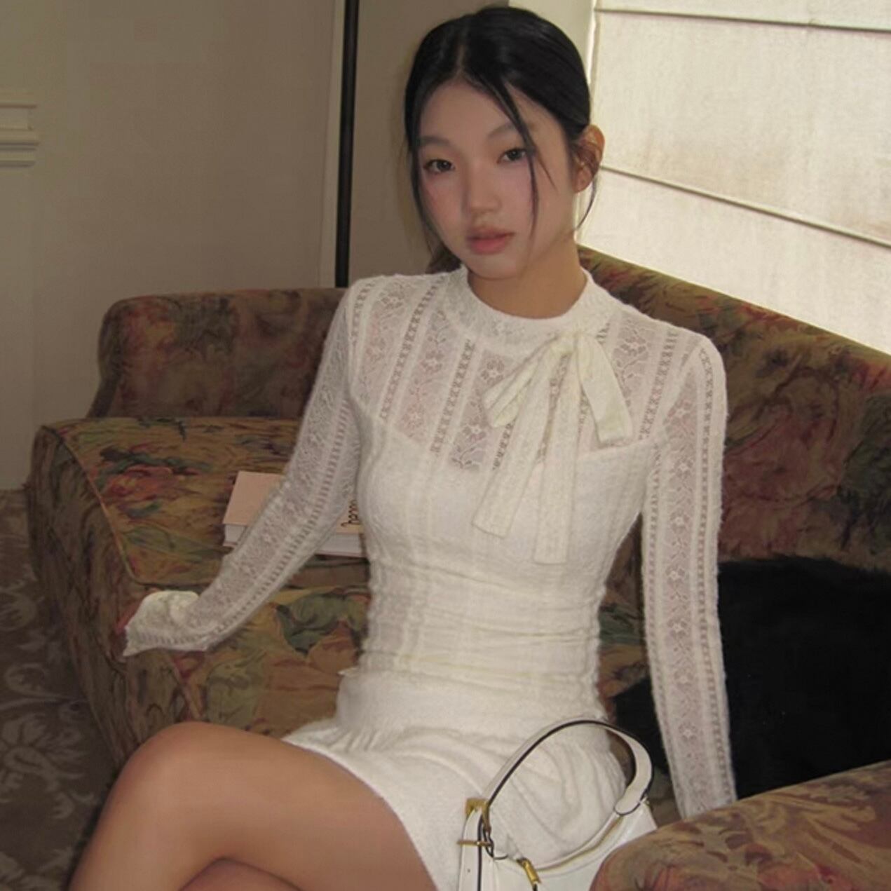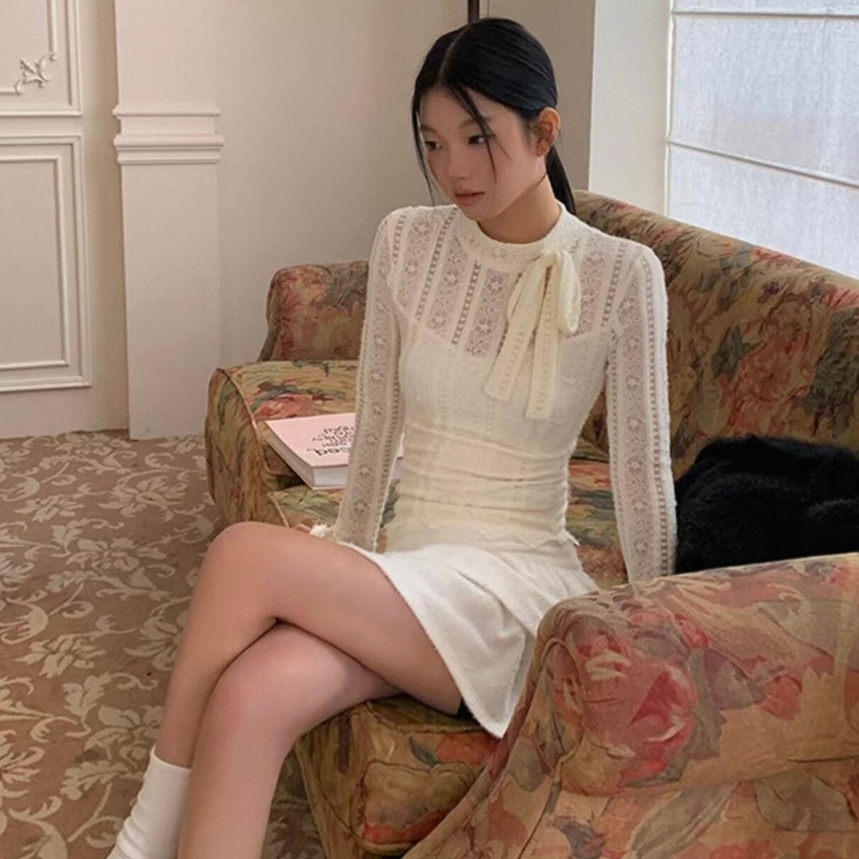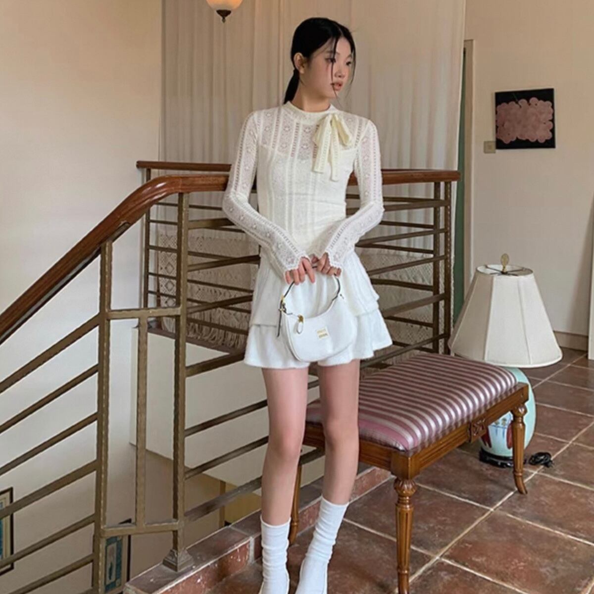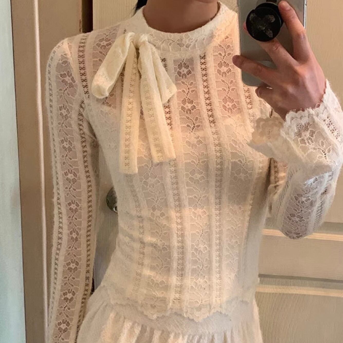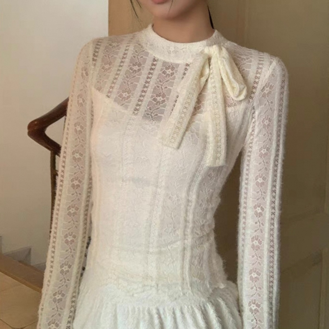 【tops】重ね着風総レースリボントップス KQ0316