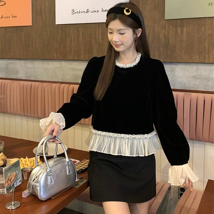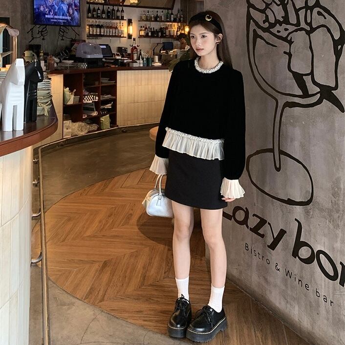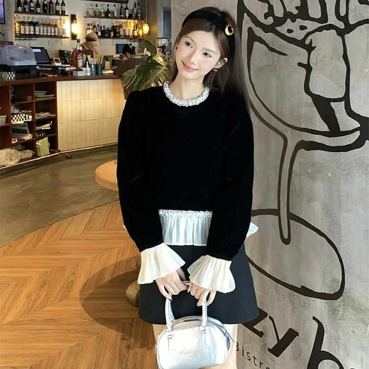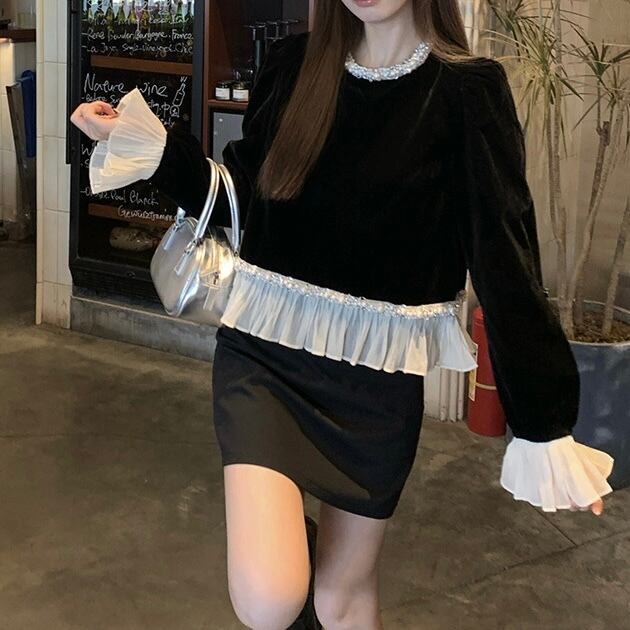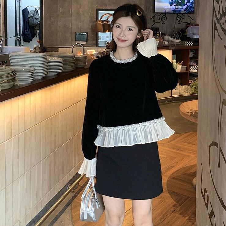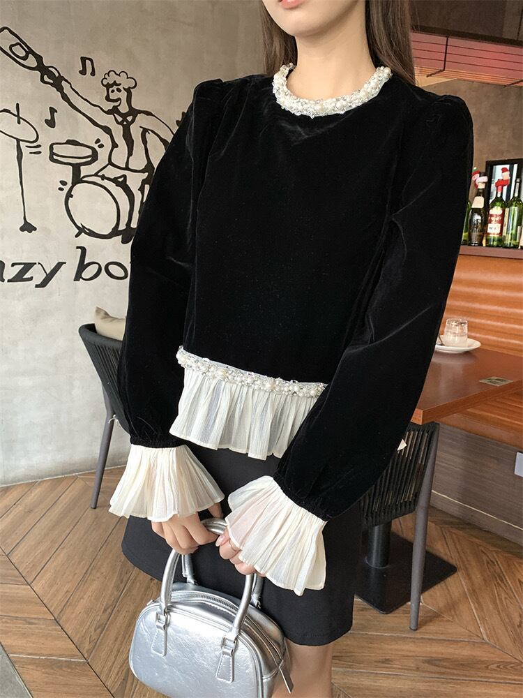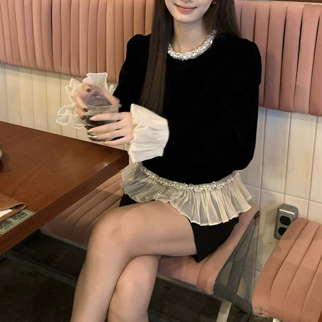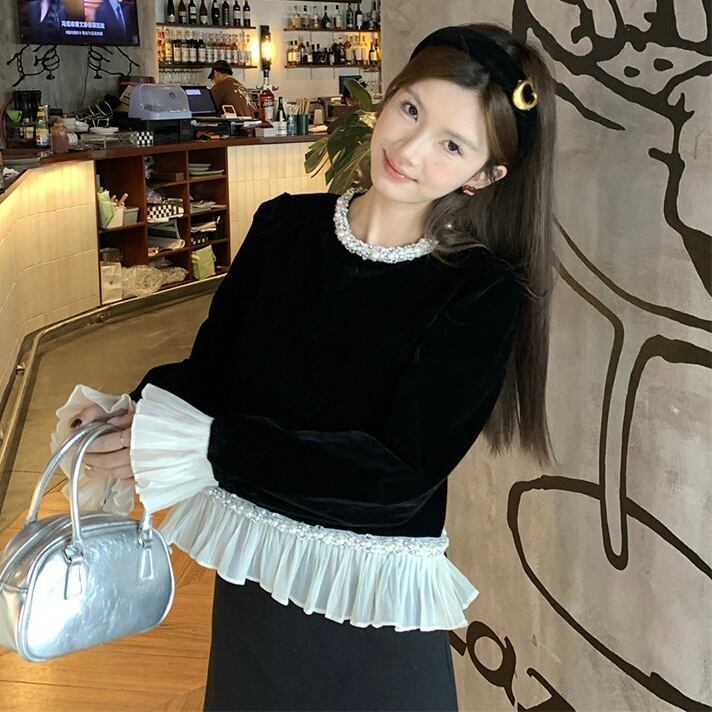 【tops】フリルベルベットトップス OR0091