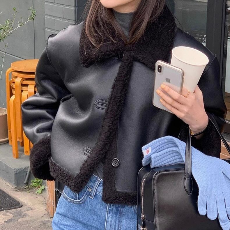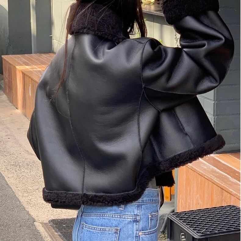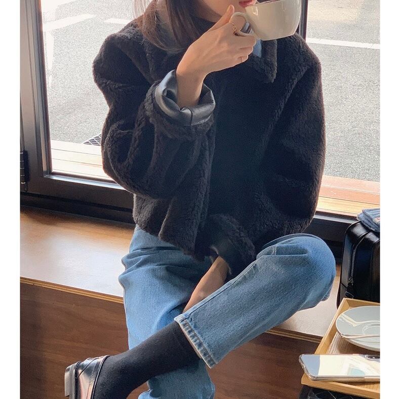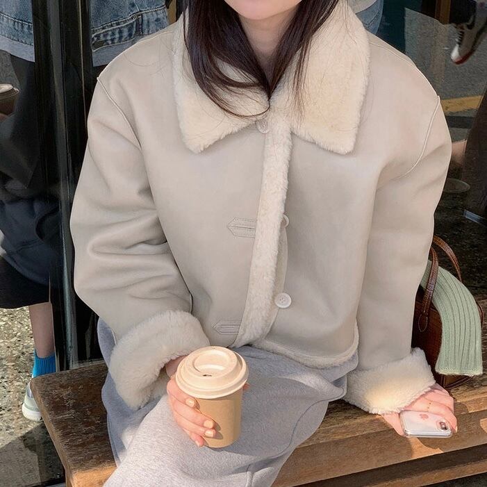 【outer】2wayリバーシブルエコレザーファーブルゾン2色 OR0101