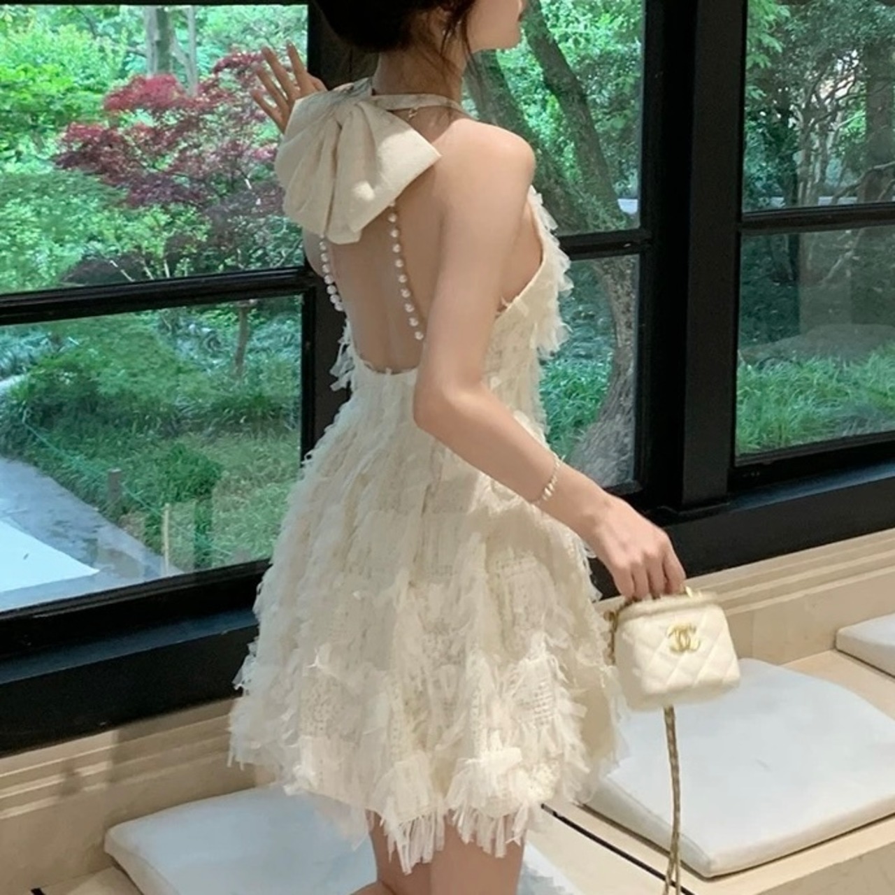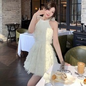 【dress】バックリボンパールワンピース OR0109