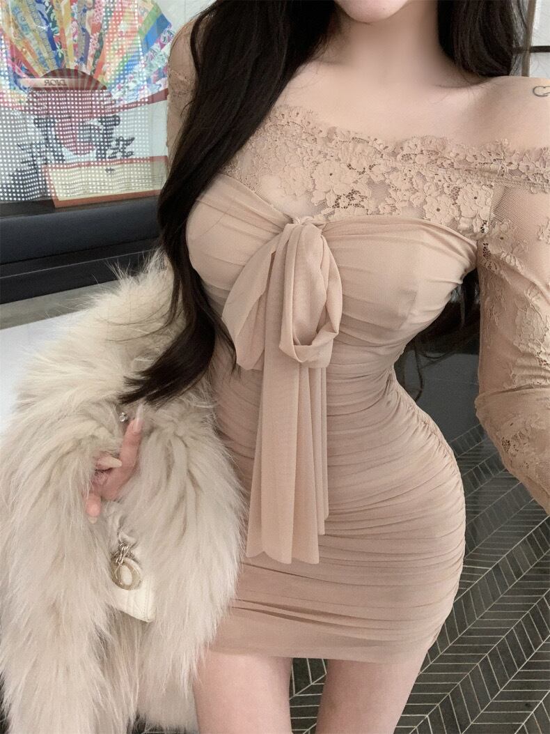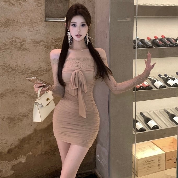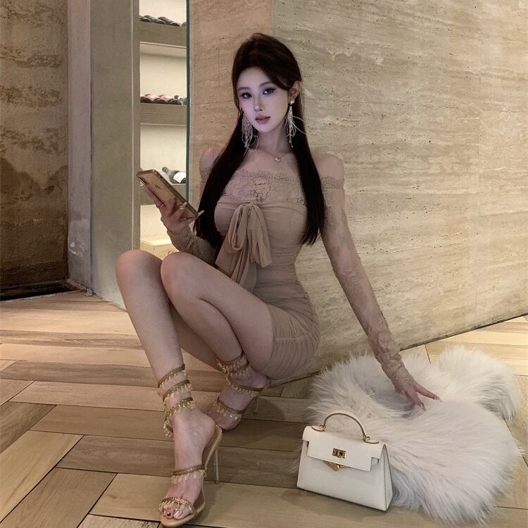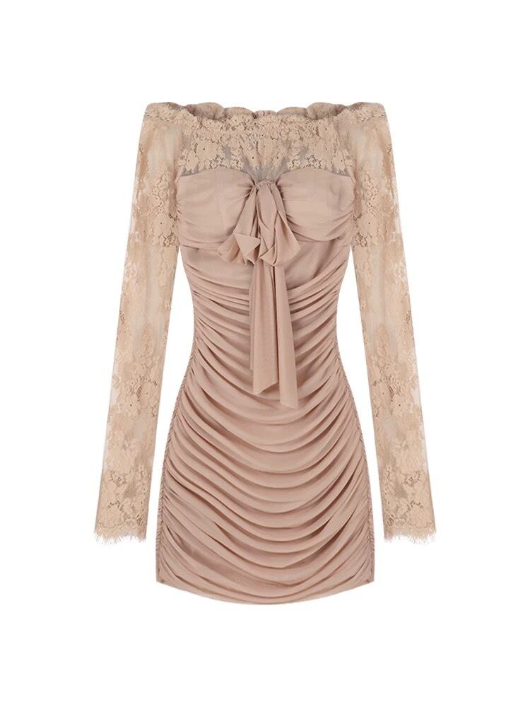 【dress】オフショルダーレースミニワンピース OR0112