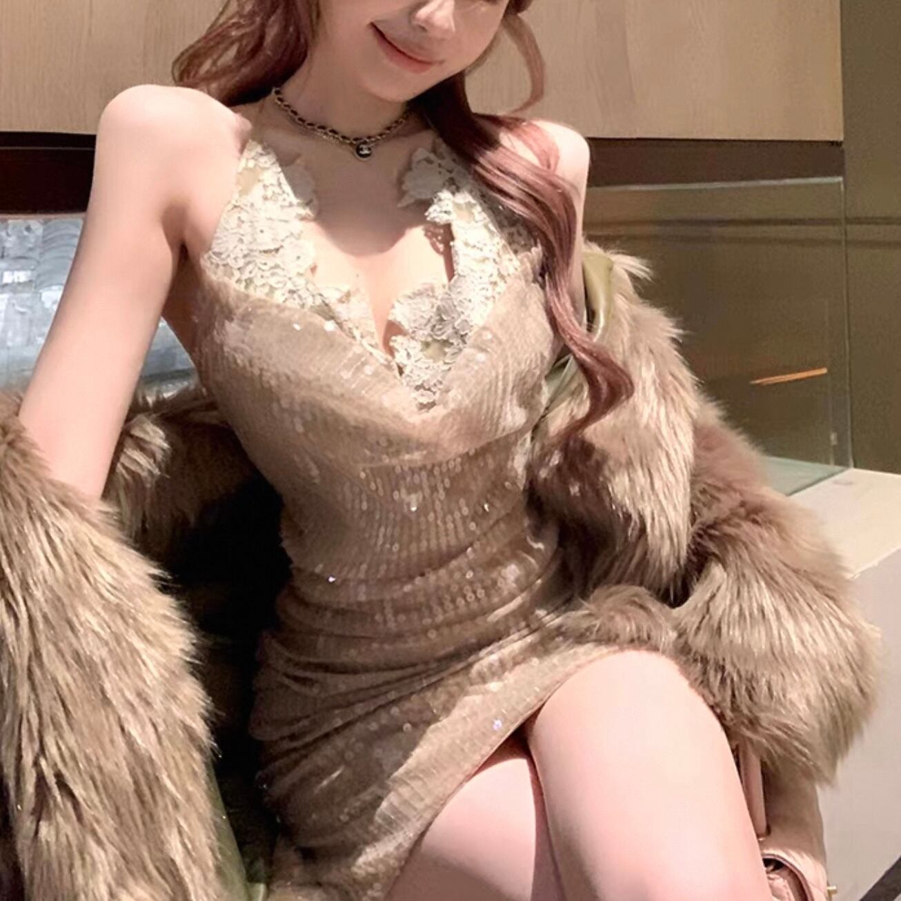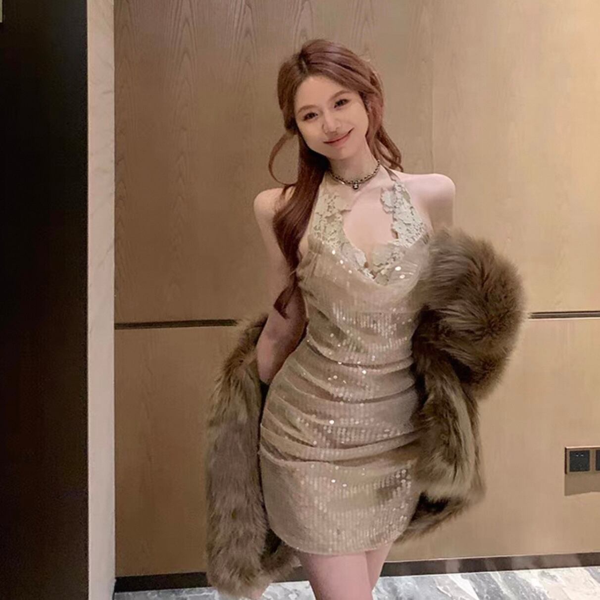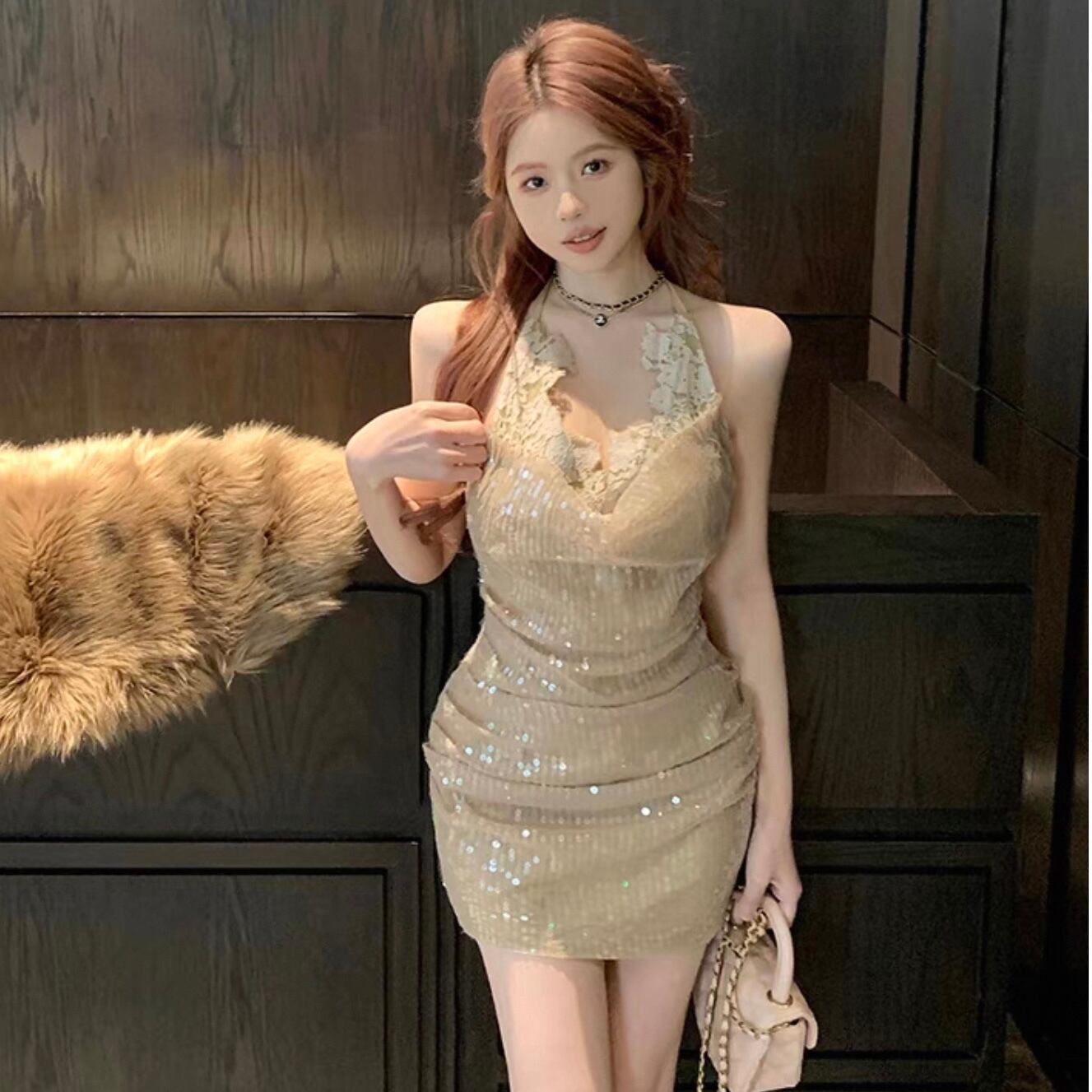 【dress】キラキラスパンコールミニドレス2色 KQ0324