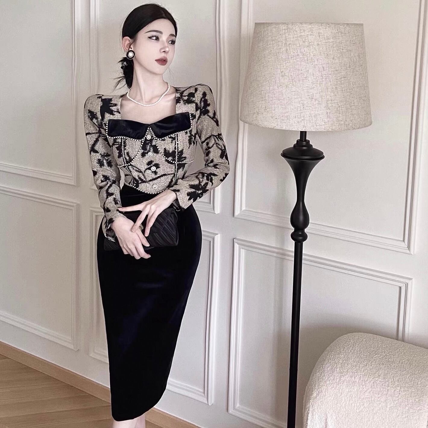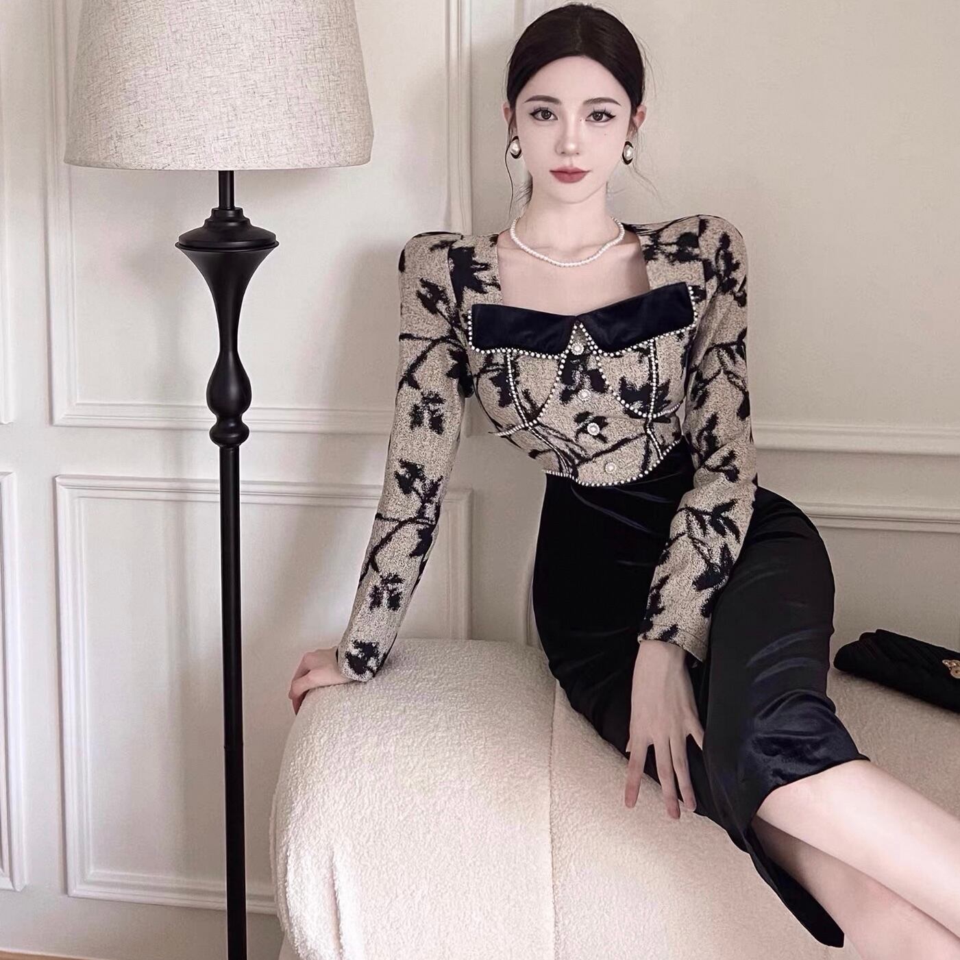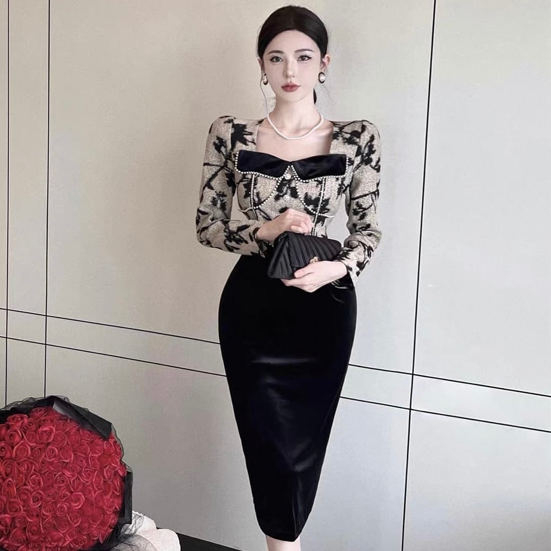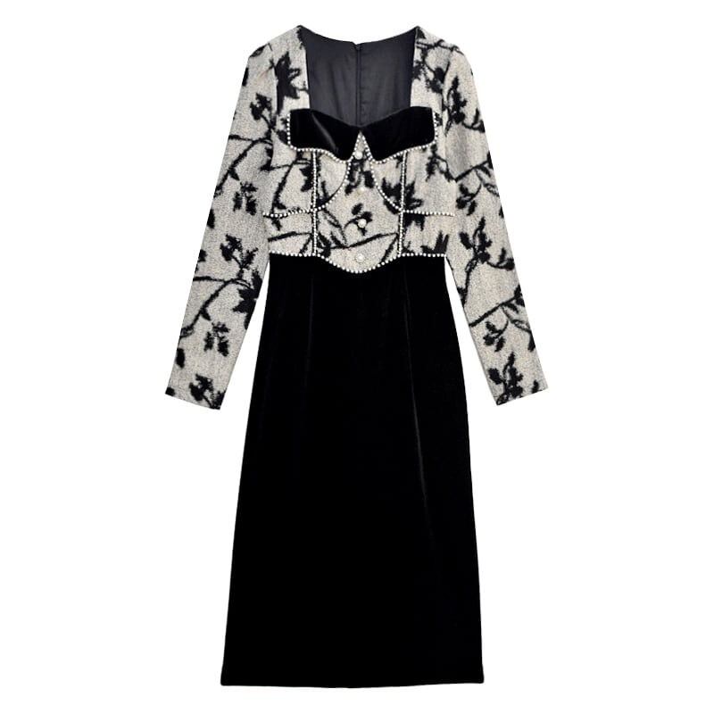 【dress】ビーズステッチ切り替えレトロワンピース KQ0334