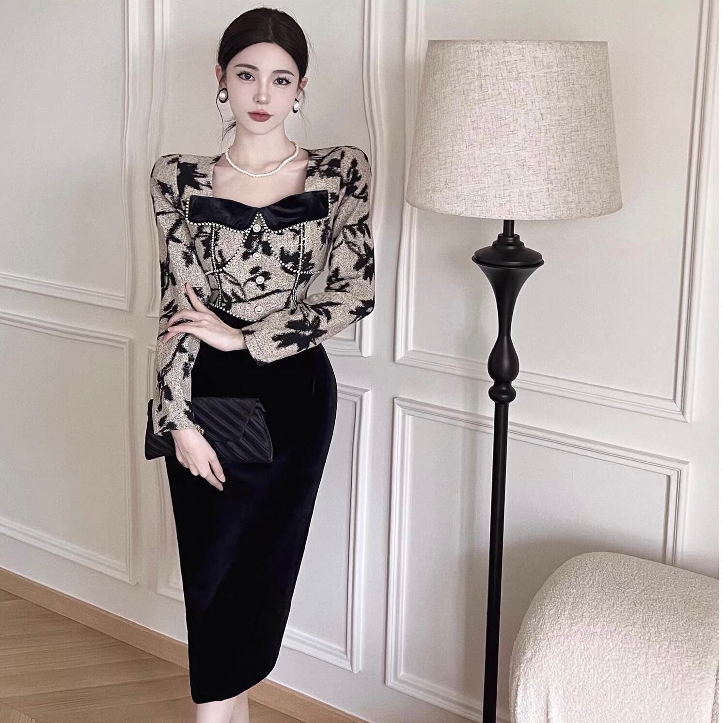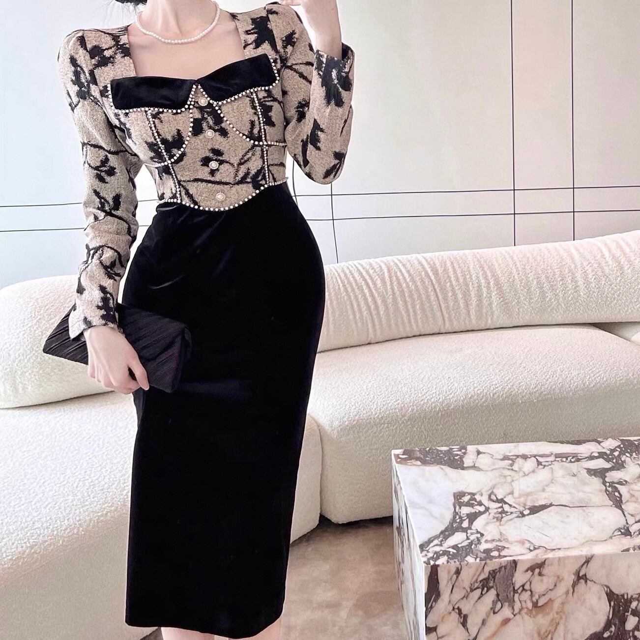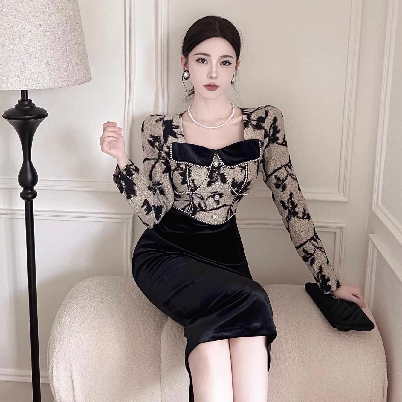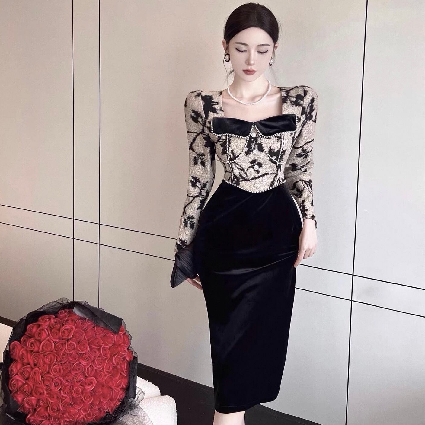 【dress】ビーズステッチ切り替えレトロワンピース KQ0334