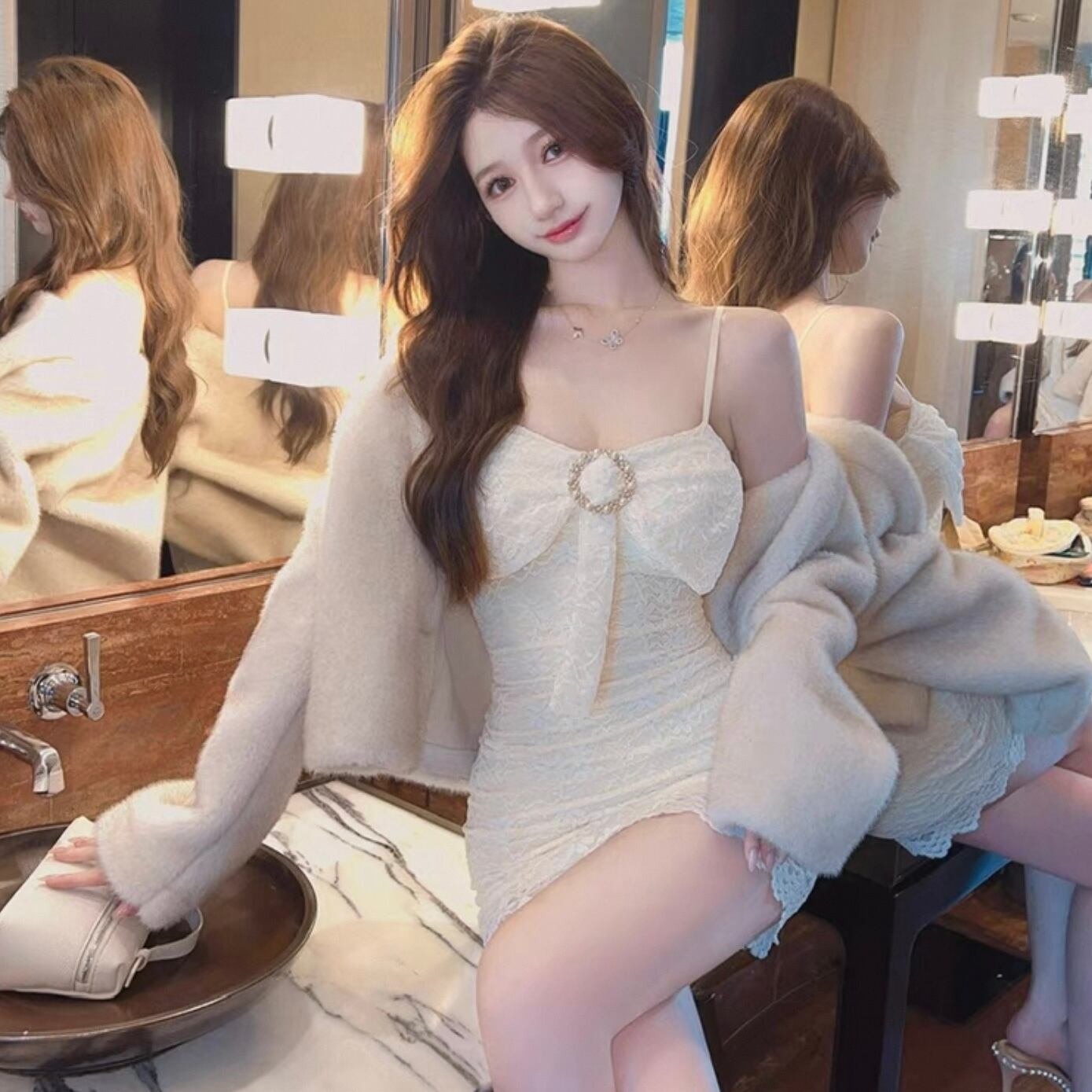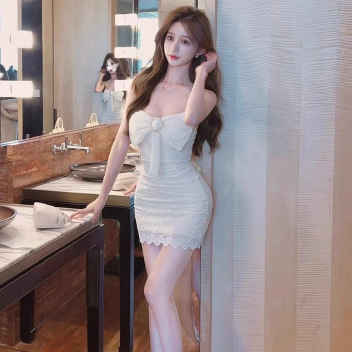 【dress】シアーリボンデザインミニワンピース3色 KQ0335