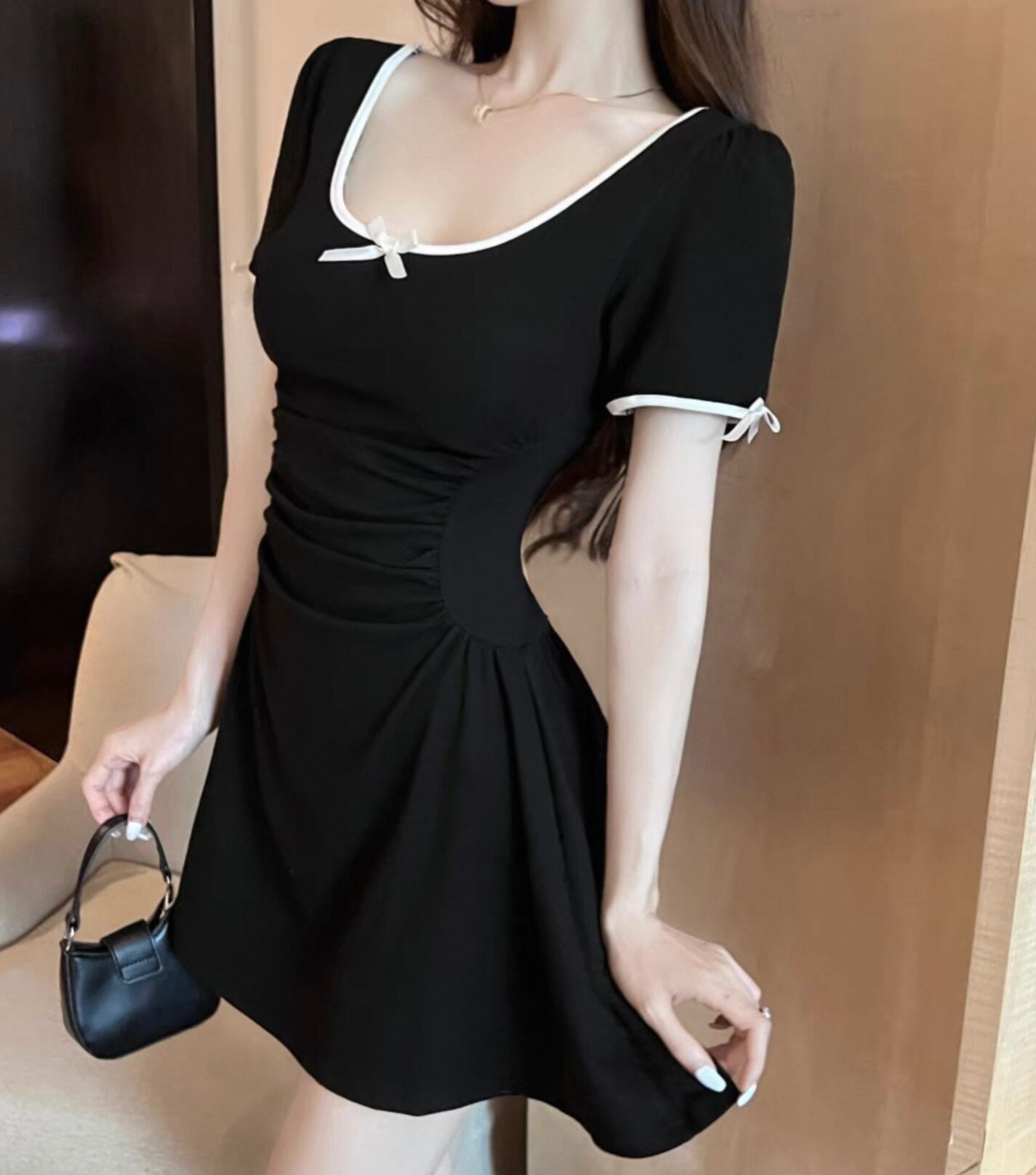 【dress】半袖ミニリボンフレンチワンピース KQ0336