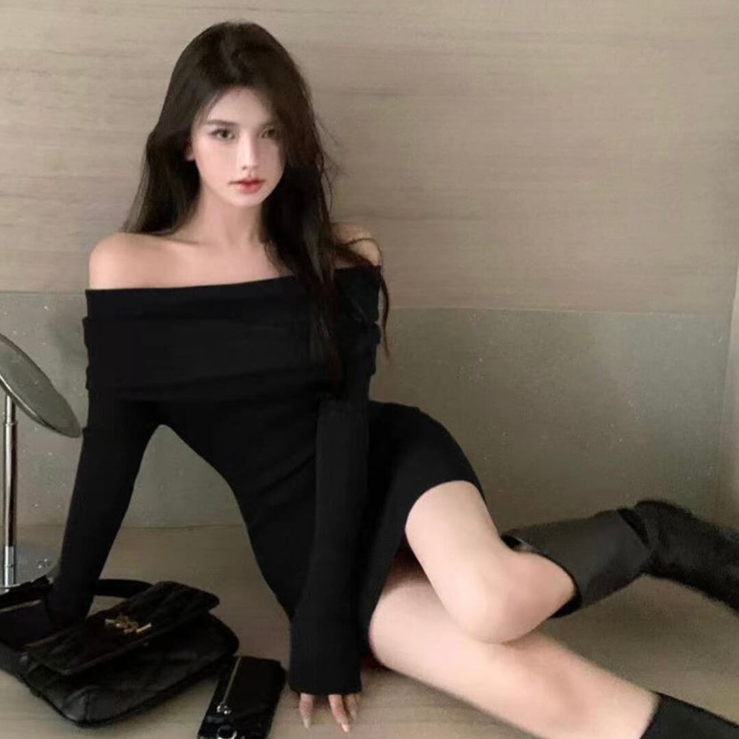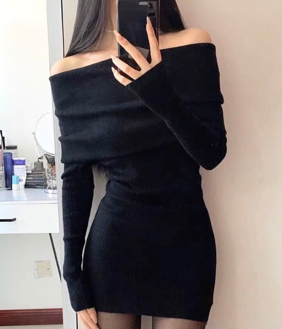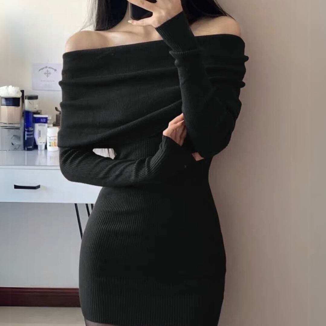 【dress】オフショルダーリブニットタイトミニワンピース KQ0337