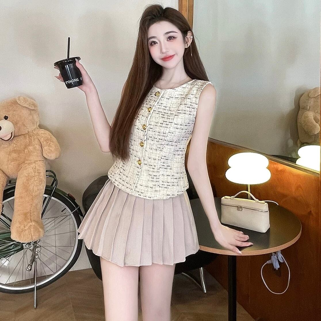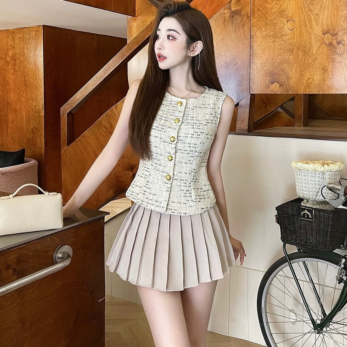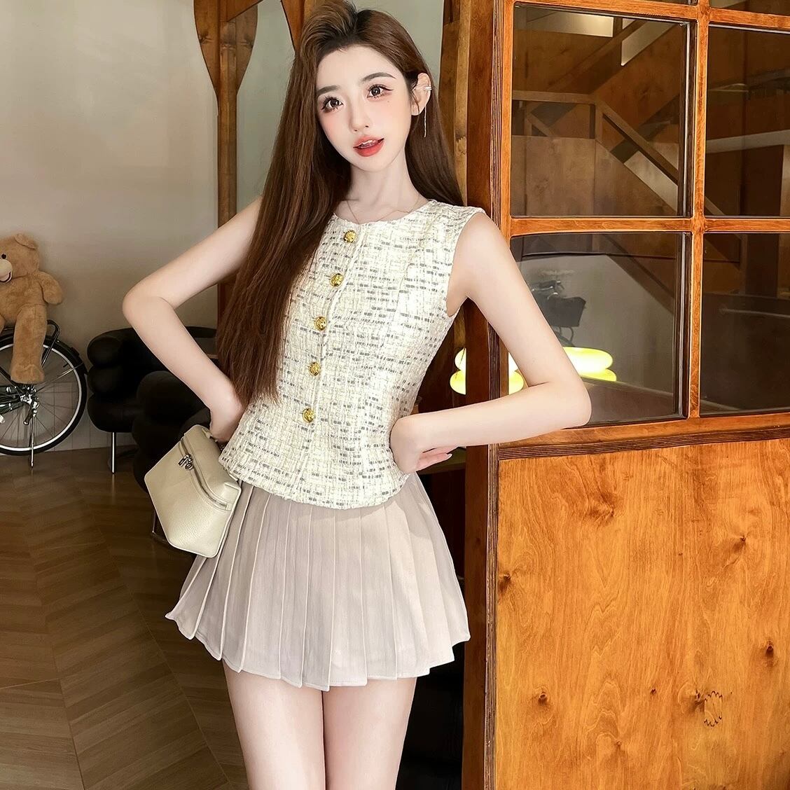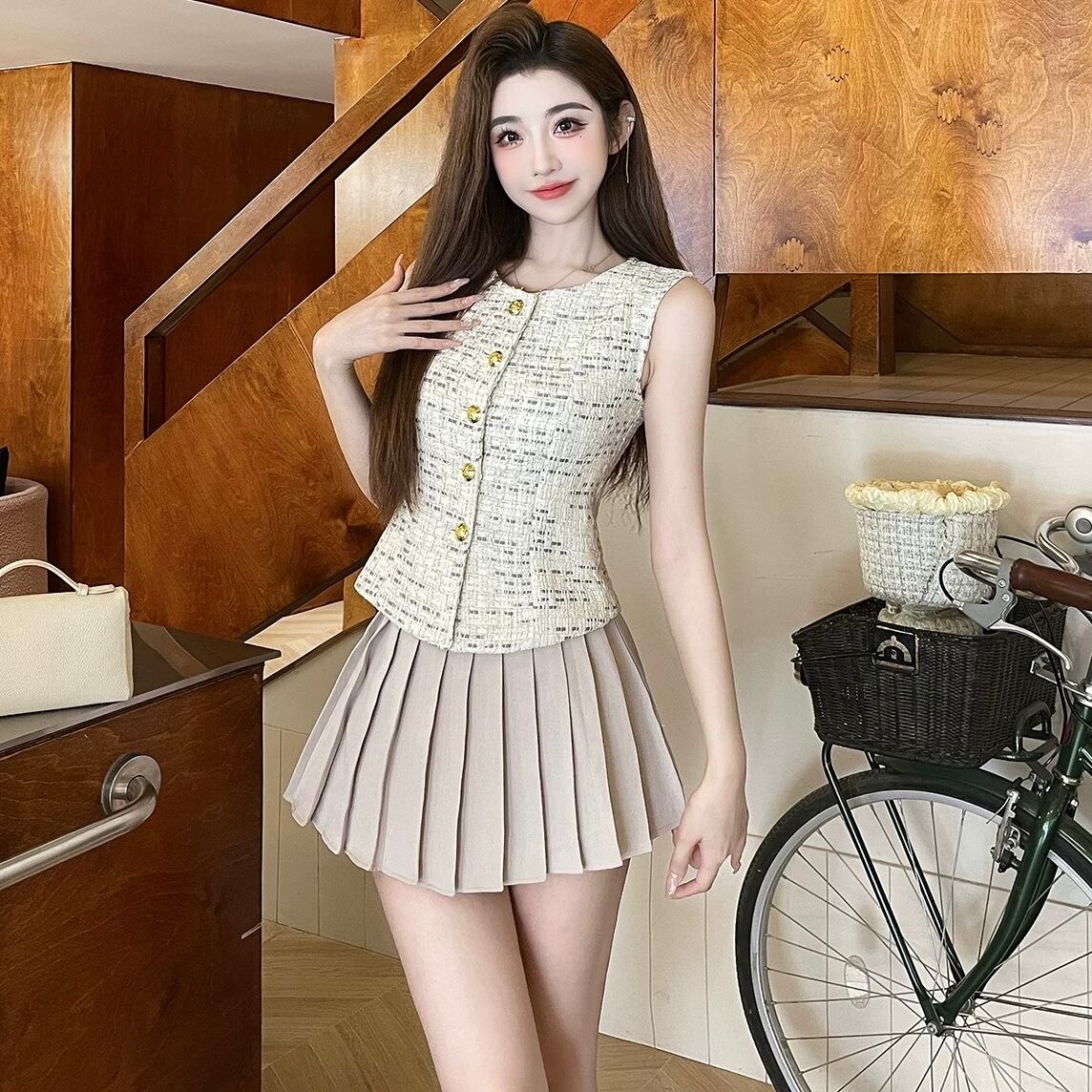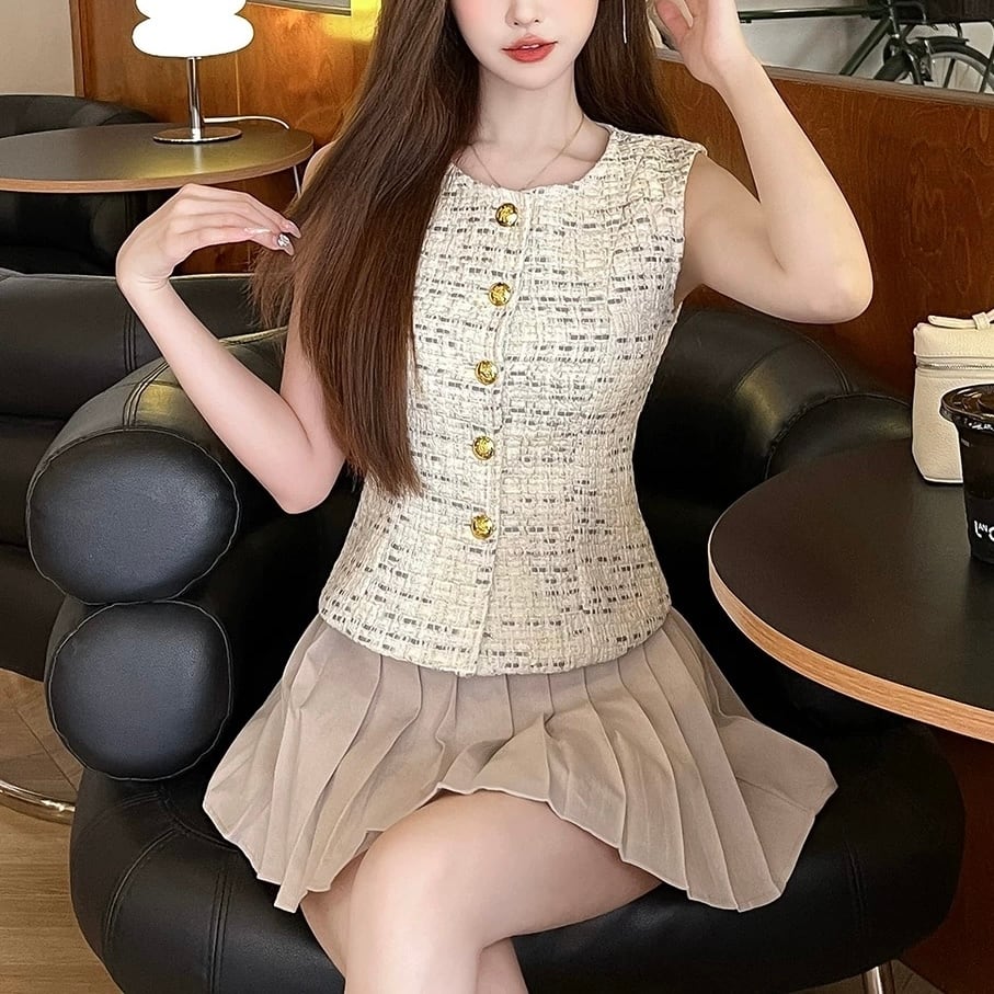 【tops】ゴールドボタンジレトップス OR0145