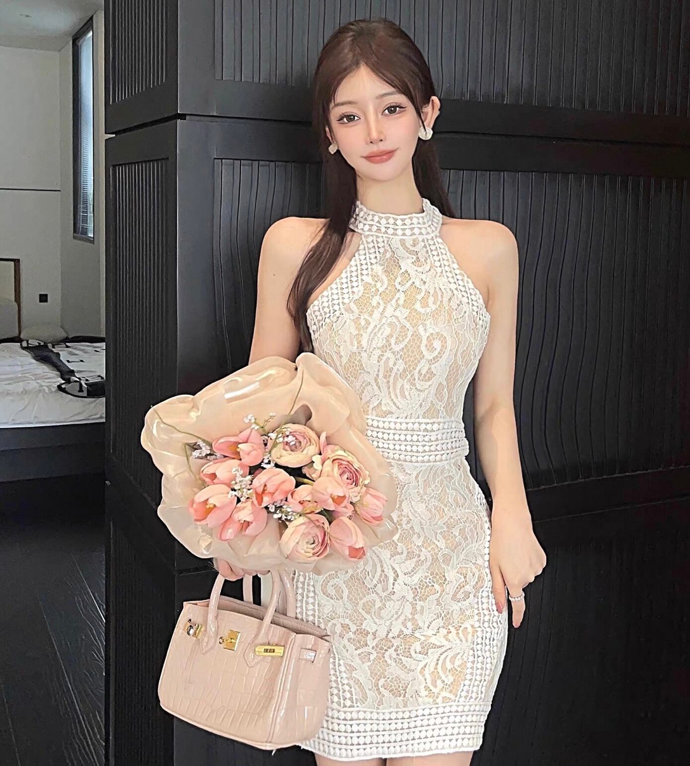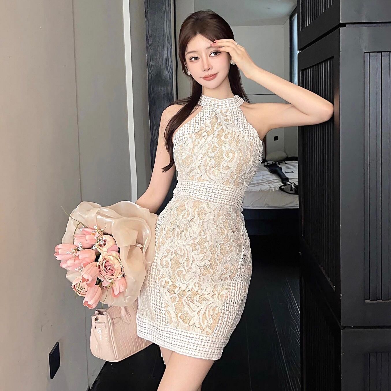 【dress】ホルターネック総レースワンピース2色 KQ0344