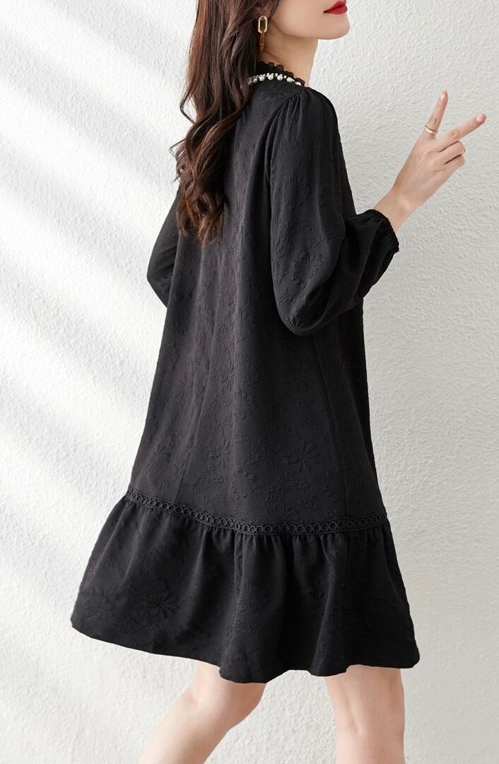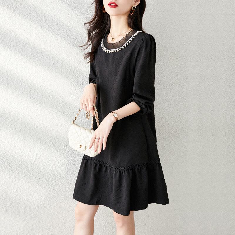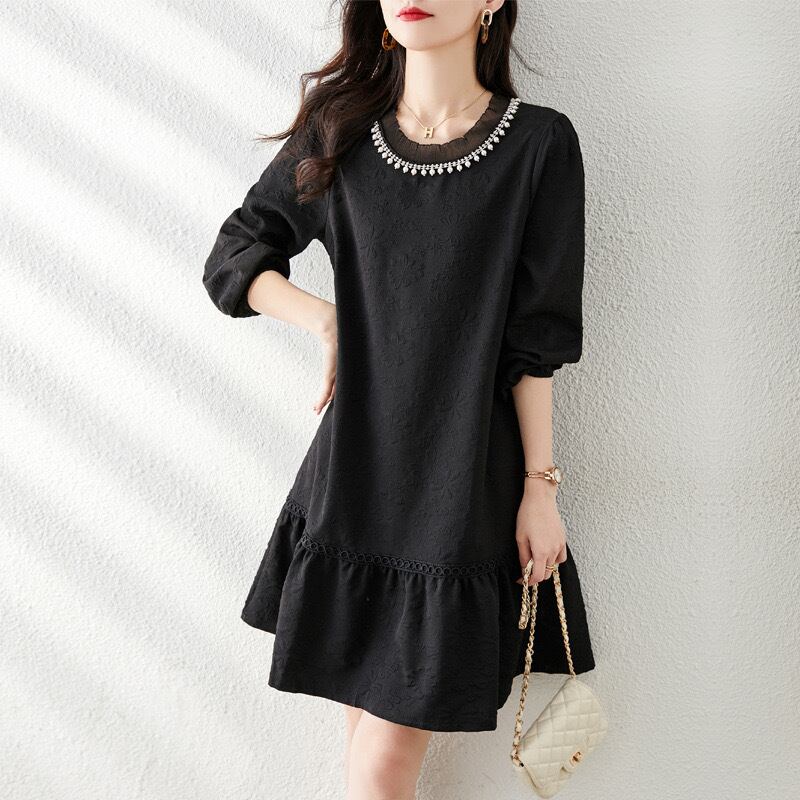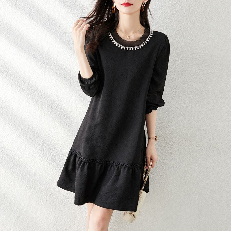 【dress】M〜2XLゆったりパールラウンドネックワンピース OR0153