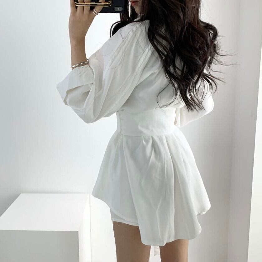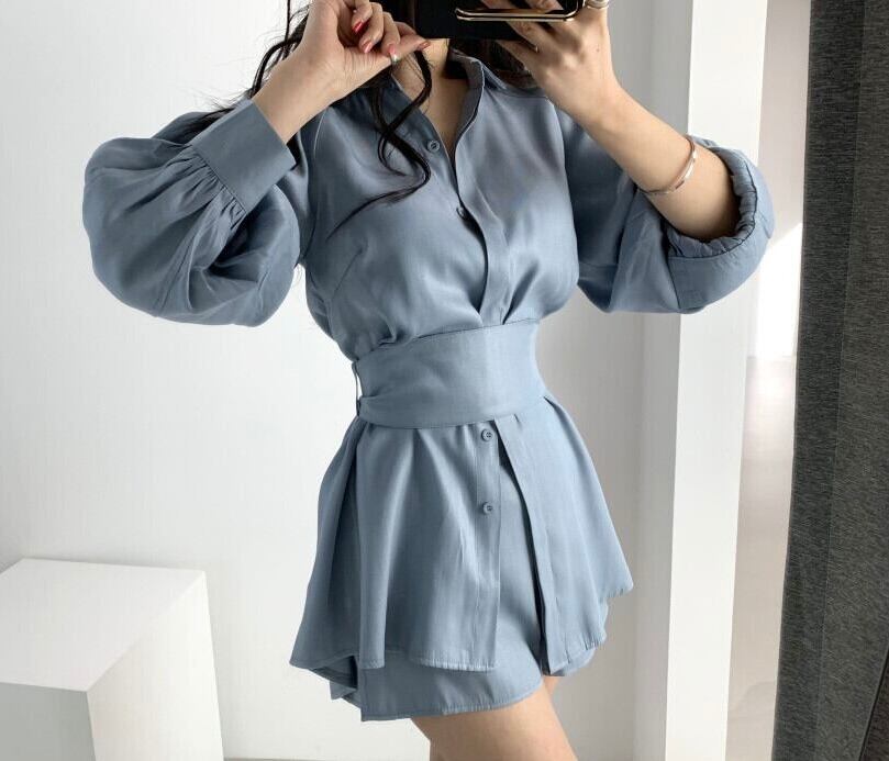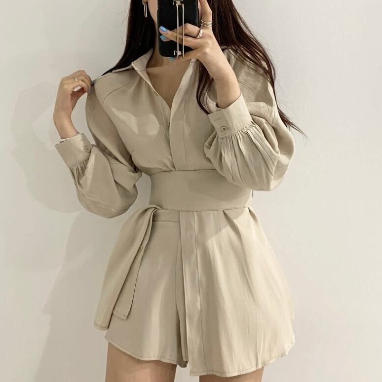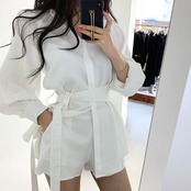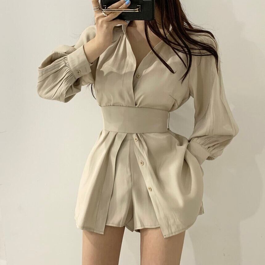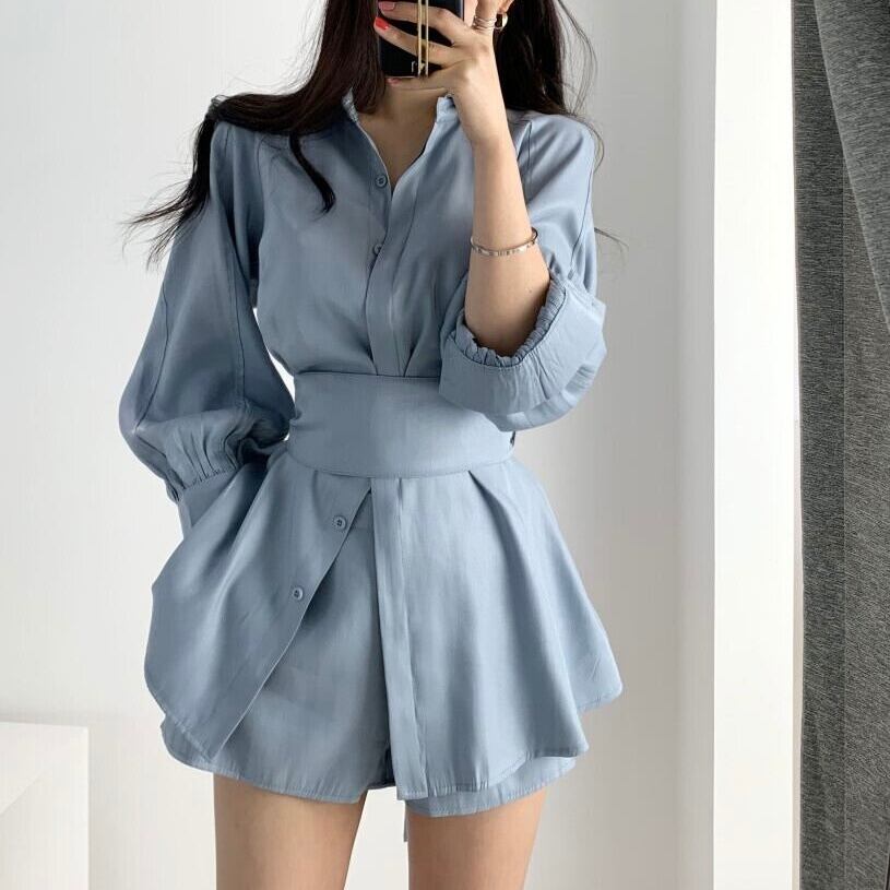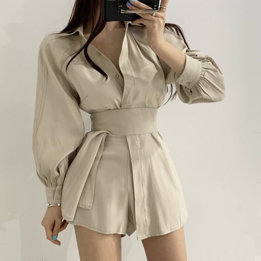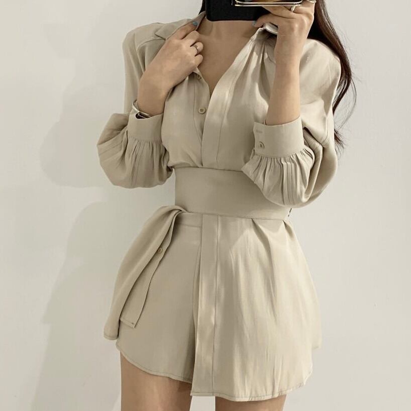 【set】長袖オーバーチュニック×ショートパン3色 KQ0345