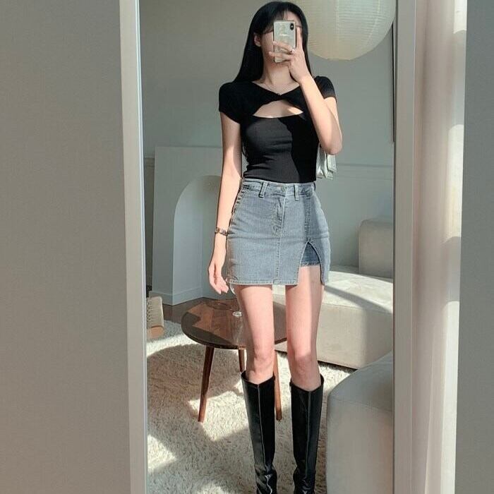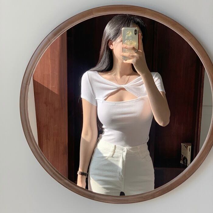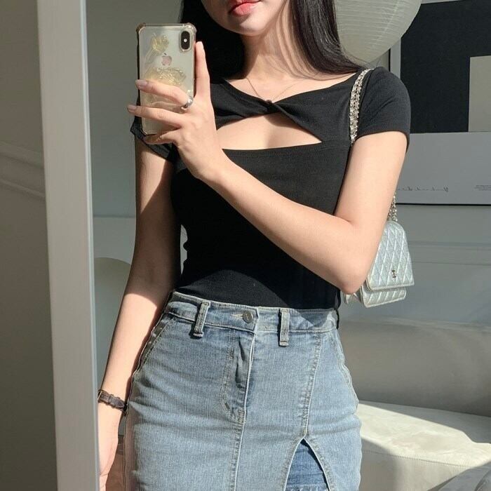 【tops】胸開きカットソータイトトップス2色 KQ0349