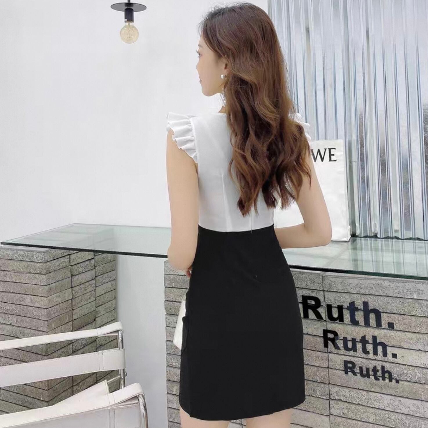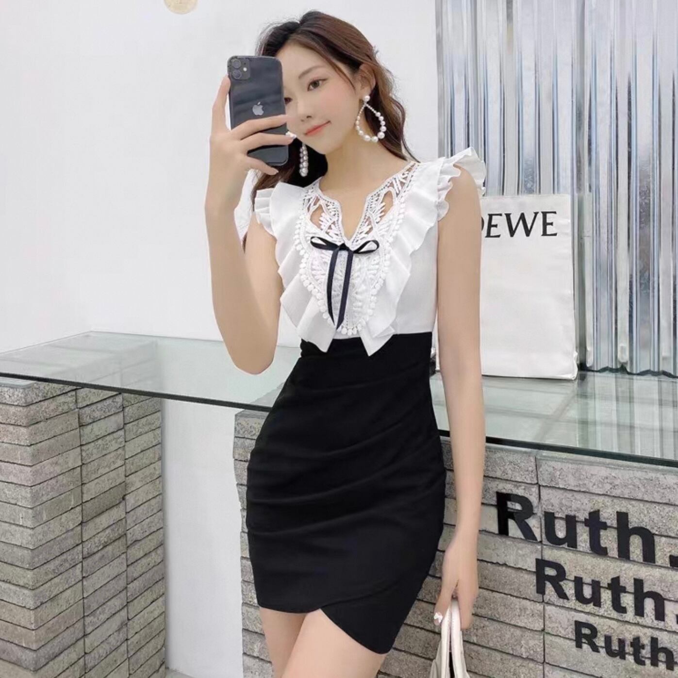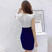【dress】フリルレースバイカラーワンピース2色 KQ0350